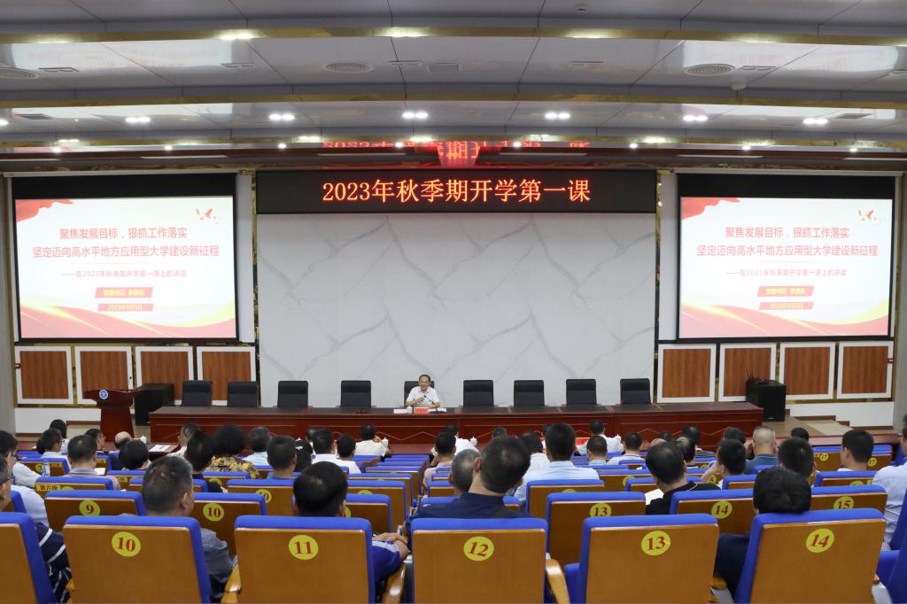 党委书记李清先讲授题为“聚焦发展目标,狠抓工作落实,坚定迈向高水平地方应用型大学建设新征程”的2023年秋季期开学第一课。