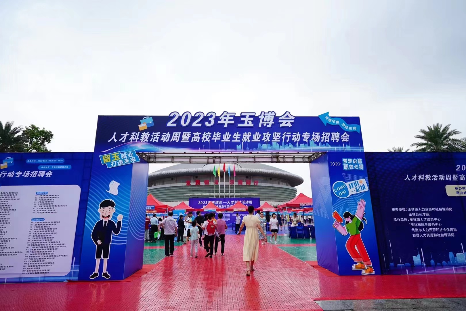 9月19日,我校联合玉林市人力资源和社会保障局在玉林市体育馆举办2023年玉博会——人才科教活动周暨高校毕业生就业攻坚行动专场招聘会。本次招聘会共206家用人单位进场,提供5516个岗位。当天进场人数上万人,达成意向人数800人。完美(中国)副校长刘永建深入招聘会现场指导。