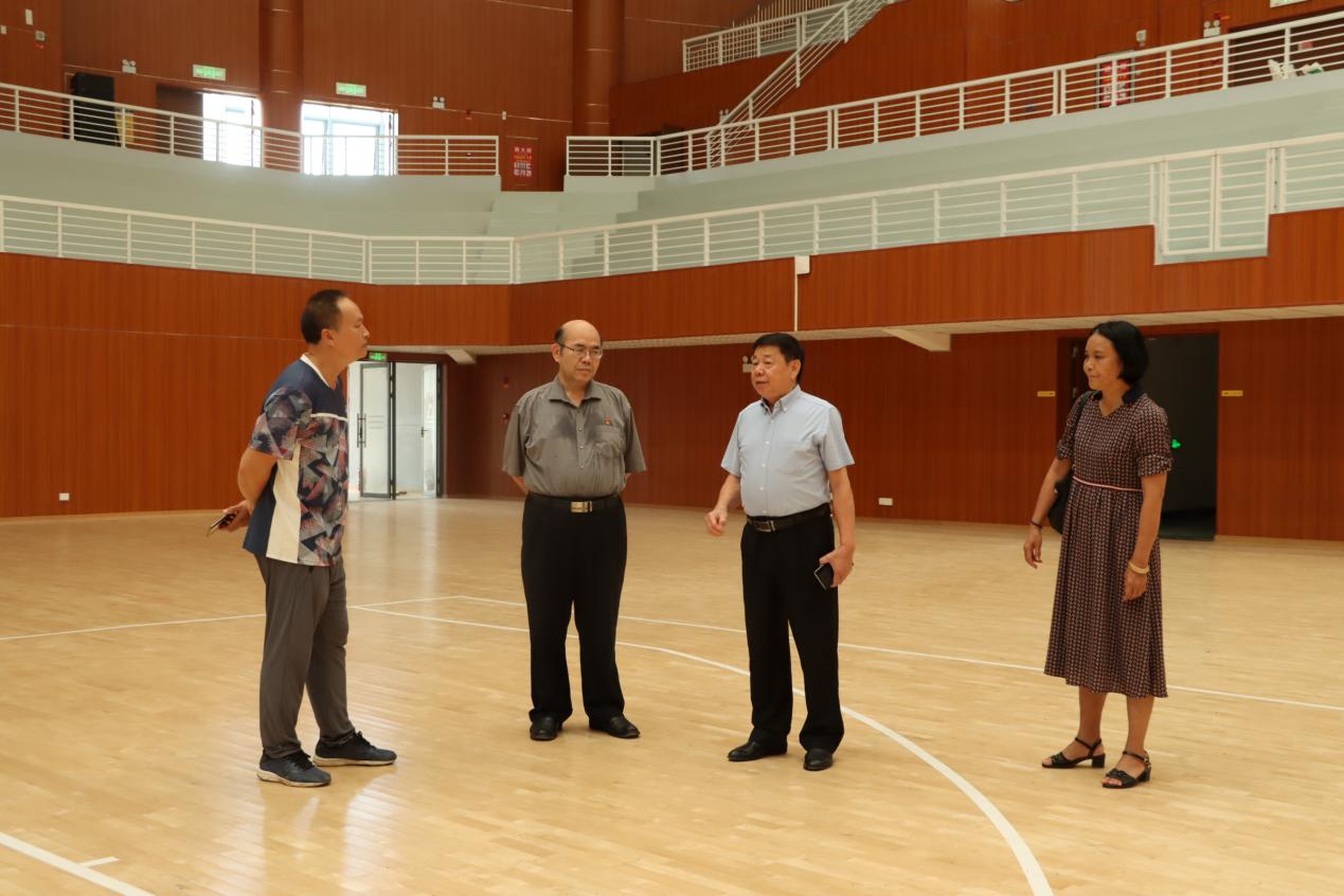 陈洛一行实地查看了我校新建体育馆,现场听取我校关于承办2023年全区高校教职工乒乓球比赛的筹备工作汇报。陈洛对我校赛事筹备工作给予了充分肯定,并从场地布置、赛事安排、设施设备等方面对进一步做好赛事筹备工作提出希望和要求。