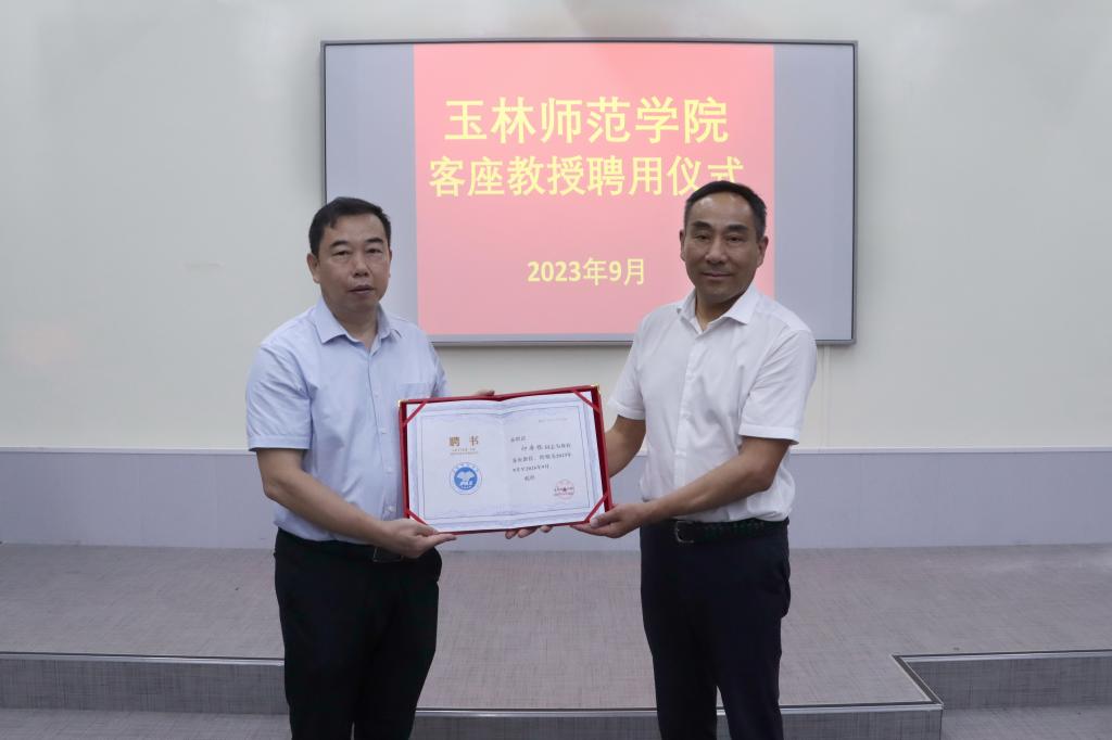 讲座前,李伟中为印寿根、李文江颁发了玉林师范学院客座教授聘书并致辞。李伟中表示,两位教授科研实力强、产学研经验丰富,希望他们结合自身经验指导我校教师开展产学研工作,希望我校教师加强与两位教授的沟通交流,进一步提升科学研究、服务地方产业发展的能力。李伟中强调,完美(中国)正在多途径加强教师队伍建设,努力建成一支既有质量教学水平高、研发能力强、社会服务能力强的师资队伍。