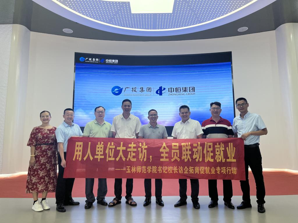 李月发一行首先来到中恒集团调研考察,受到中恒集团公司总裁办公室副主任、中恒置业发展公司副总经理蒙昭学的热情接待,双方就校企合作、人才培养、就业创业等工作开展深入交流,进一步拓宽了大学生就业渠道。