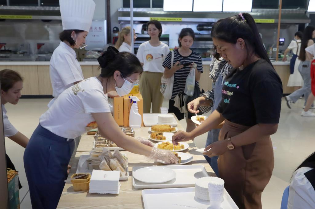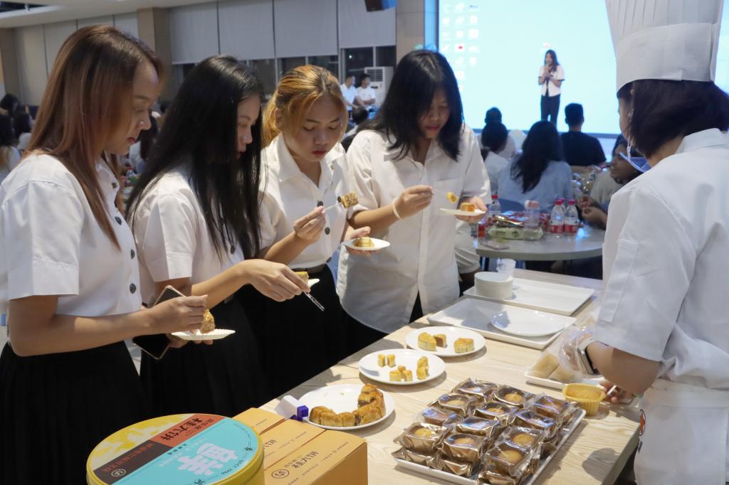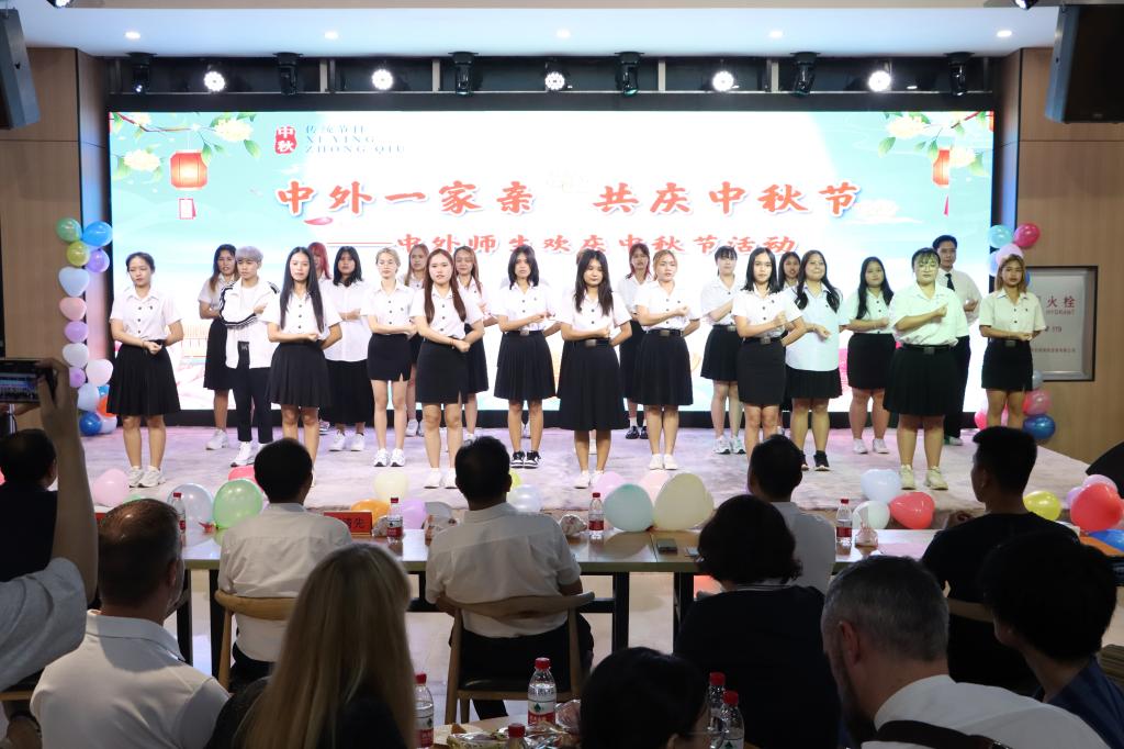李品华表示,希望通过此次活动,让中外师生们共享品华居月饼,传递月饼中秋文化,感受中国传统文化,分享幸福广西味道。国际教育学院的学生们通过诗歌朗诵及歌舞表演展示文化风采,表达对未来的美好祝愿,现场节日氛围浓厚。
