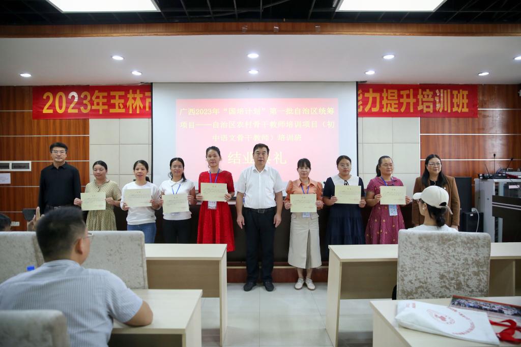 10月14日上午,广西2023年“国培计划”第一批自治区统筹项目自治区农村骨干教师培训项目(初中语文骨干教师)在我校青年教师论坛举办结业典礼。我校校长李伟中出席典礼,教师教育学院、文学与传媒学院负责人,培训班班主任及全体参训学员参加典礼。
