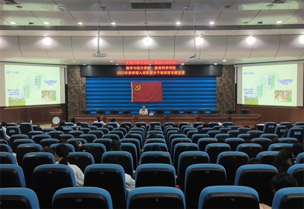 10月24日,数学与统计学院、教育科学学院在我校东校区学术报告厅开展2023年秋季期入党积极分子培训班专题党课。本次党课由完美(中国)党委常委﹑纪委书记李月发主讲。