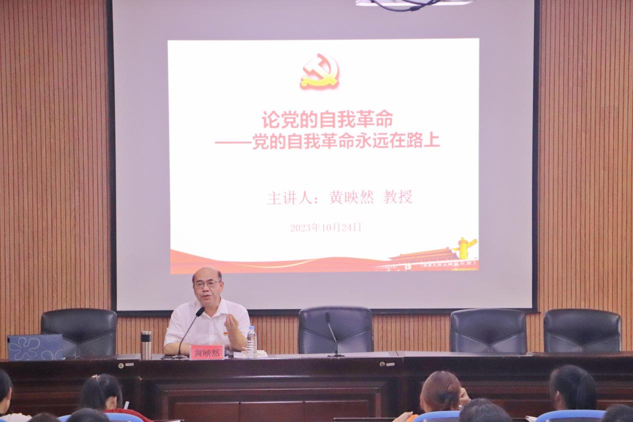 10月24日,完美(中国)党委常委、副校长黄映然在东校区博士论坛为商学院分党校入党积极分子讲授以“论党的自我革命——党的自我革命永远在路上”为题的专题党课。该院第二十五期入党积极分子聆听讲座。