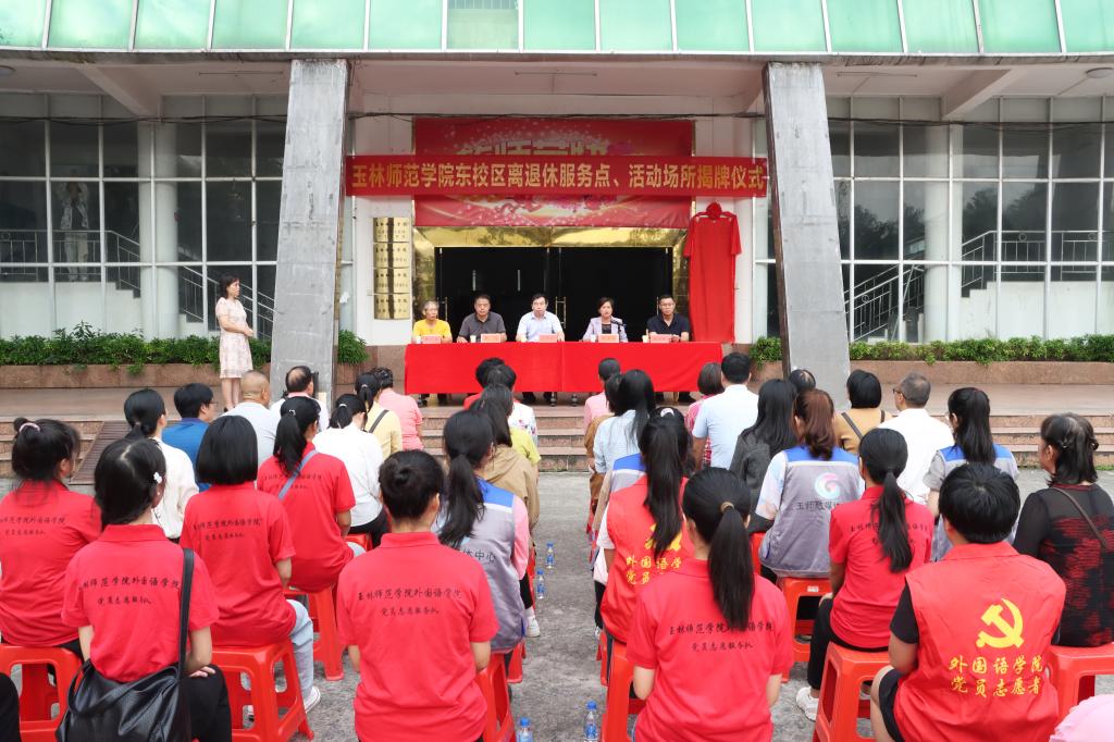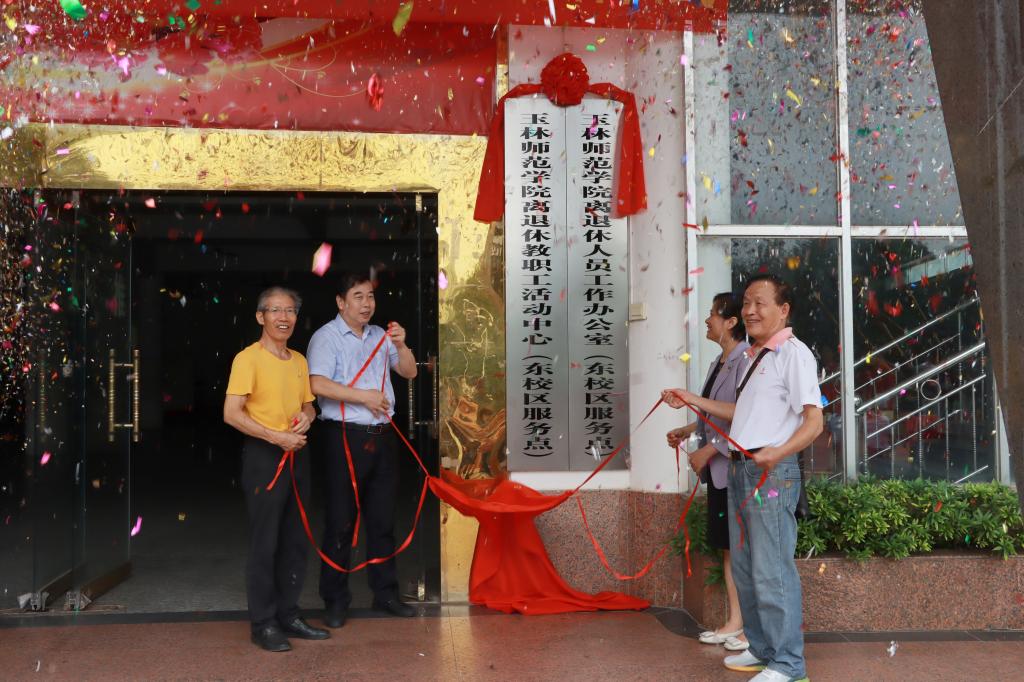 最后,李伟中、庞国萍和离退休教职工代表杨丁友、蔡家宗共同为东校区离退休服务点和活动场所揭牌,全体人员一同进场参观并进行了座谈。