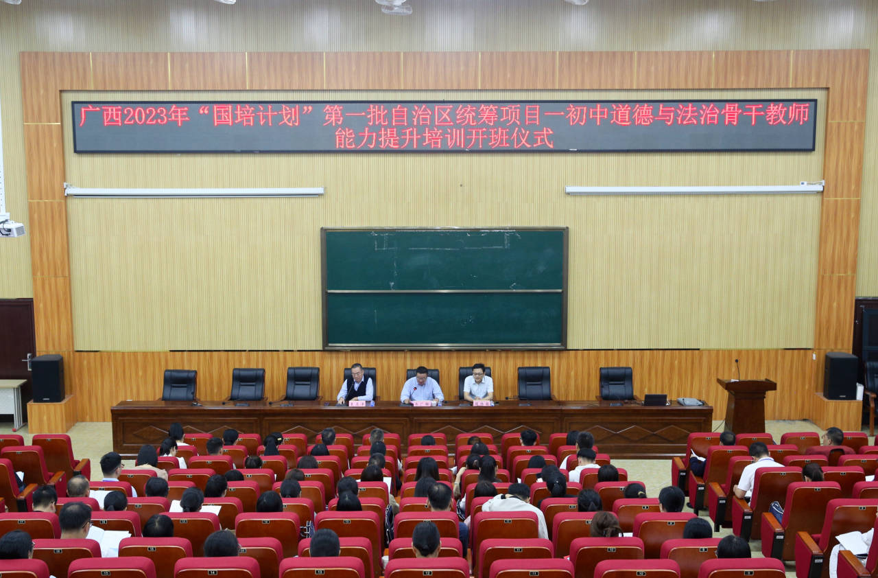 10月30日上午,广西2023年“国培计划”第一批自治区统筹项目一农村初中道德与法治骨干教师能力提升培训在我校东校区明德楼举行开班仪式。我校党委副书记韦广雄,政法学院相关负责人、培训管理团队全体教师及培训班全体学员参加开班仪式。
