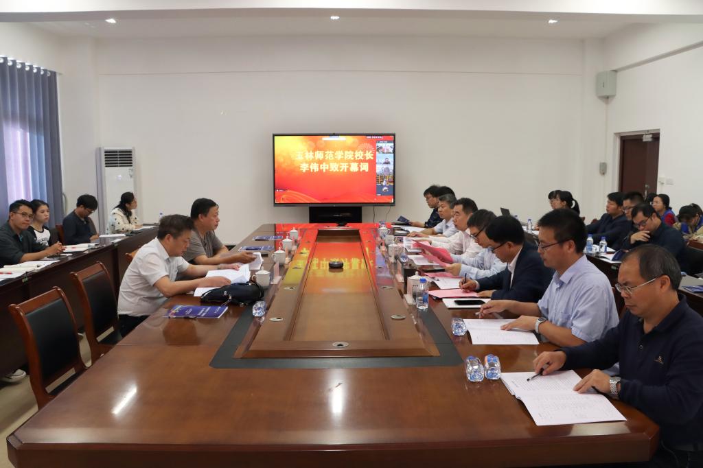 10月30日,广西应用数学中心(玉林师范学院)第一届学术委员会会议在我校东校区新民楼C408召开。我校校长李伟中,副校长刘永建,玉林市科技局党组书记、局长陈天宁出席会议,各委员会成员及数学与统计学院相关负责人参加会议。会议由刘永建主持,以“线上+线下”相结合的方式召开。