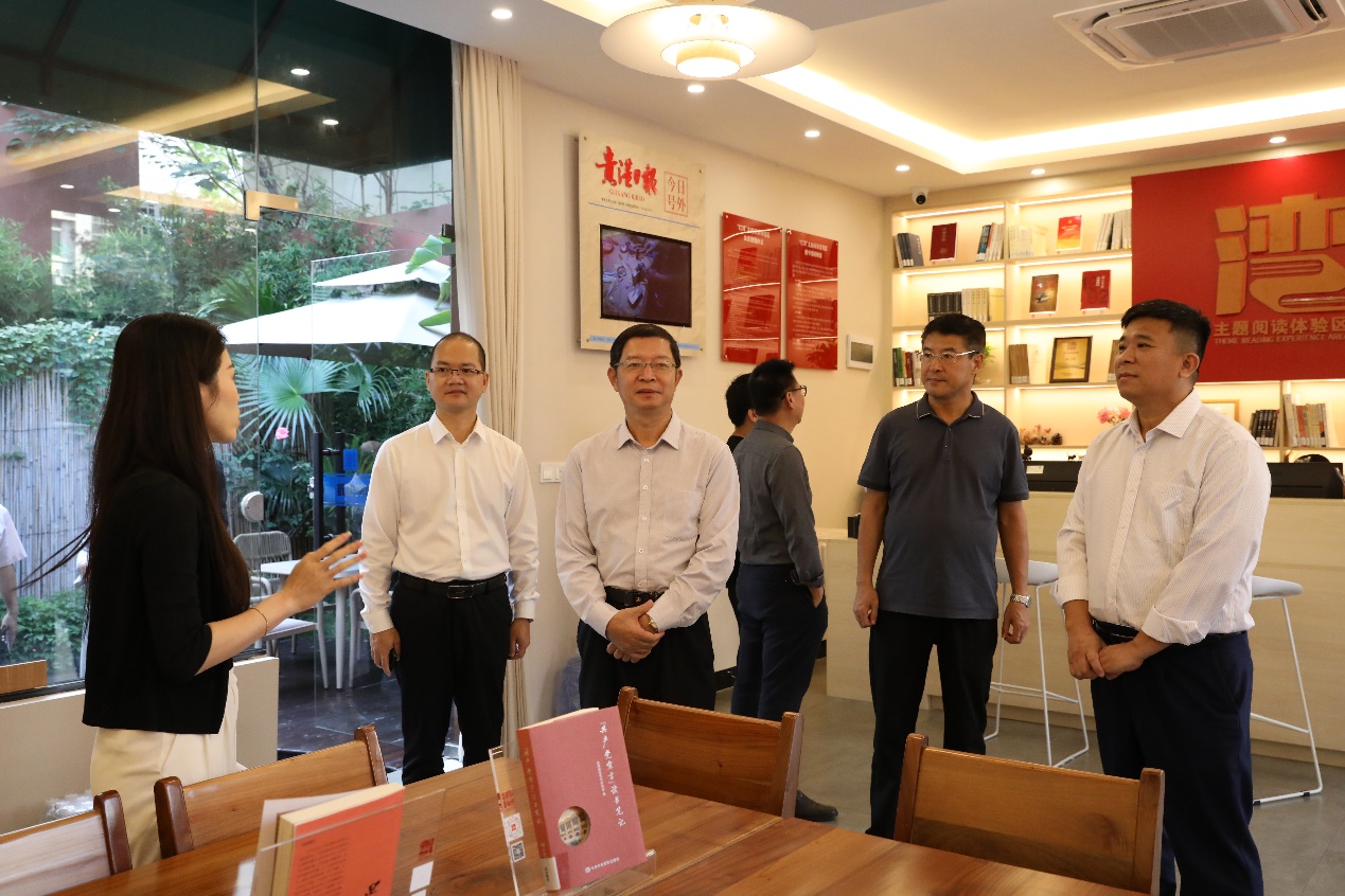 会前,徐一周实地参观了贵港日报社的公益摄影体验馆、排版部、网络直播间、融媒体实习实践基地、融媒小厨和融媒体技术部等,详细了解其建设情况以及新媒体发展现状。