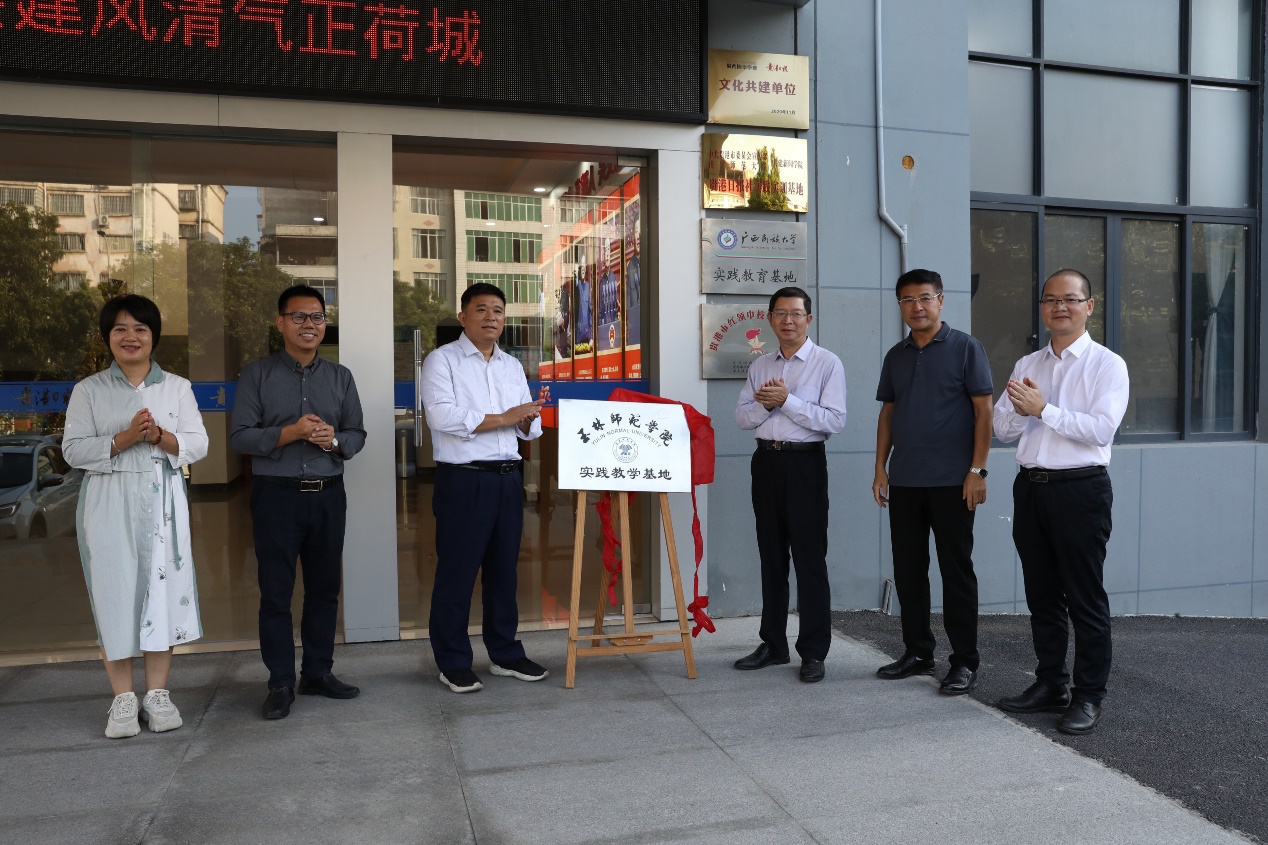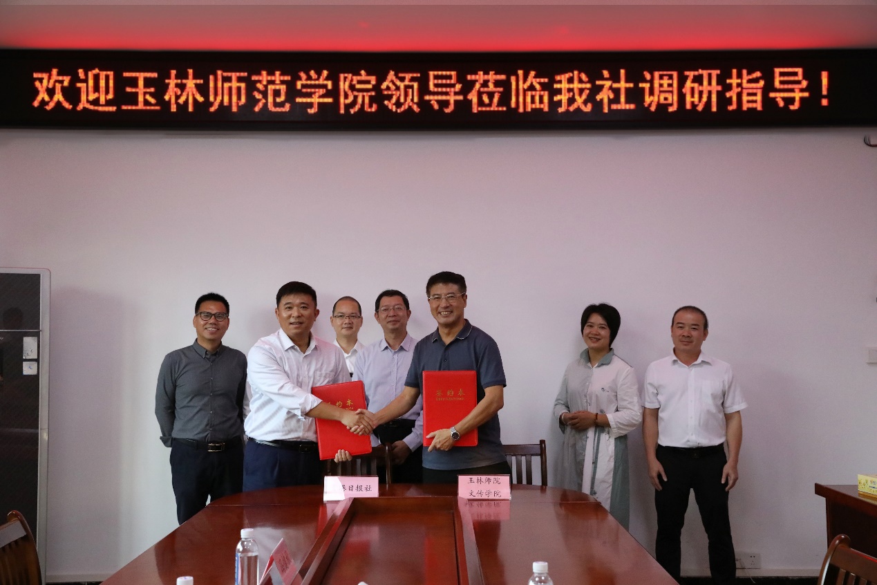 座谈会后,双方签订合作协议,并为贵港日报社实践教学基地揭牌。