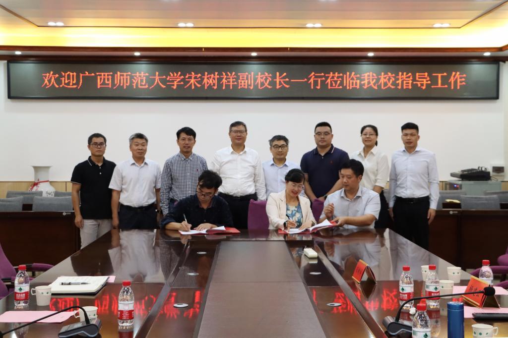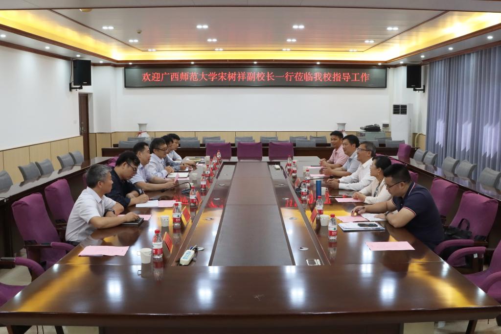 10月31日上午,广西师范大学副校长宋树祥一行到我校开展对口支援交流,我校校长李伟中、副校长刘永建及科研处全体人员参加座谈交流。