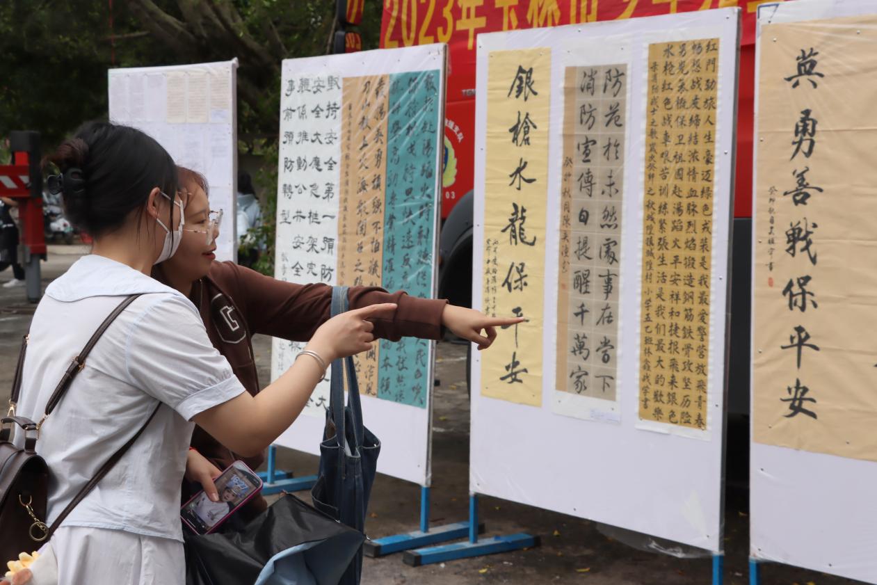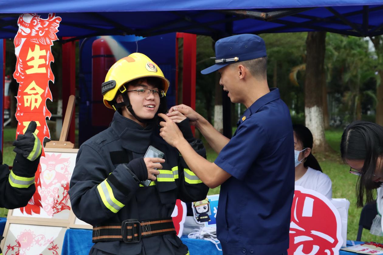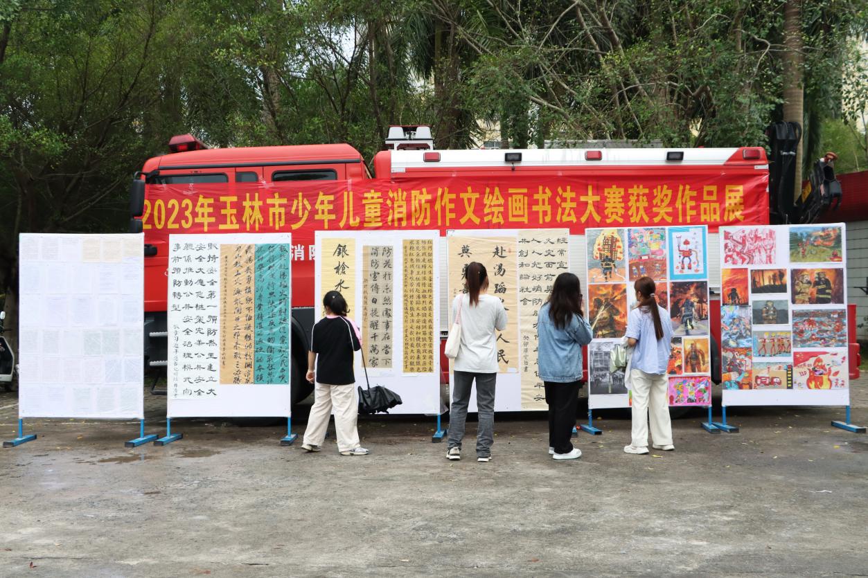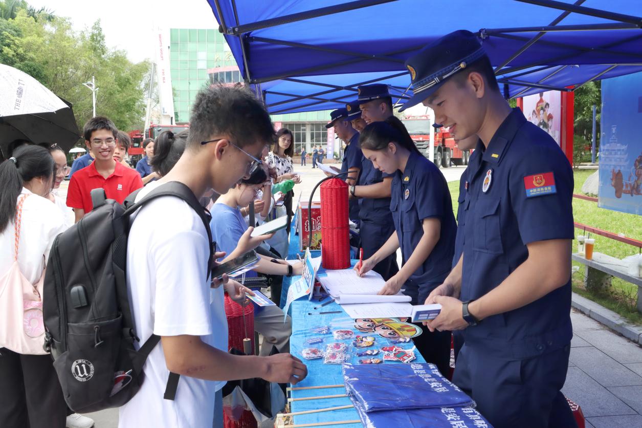在大学生活动中心前,玉林市消防和我校带来消防救援队伍改革转隶五周年成果展、玉林师范学院志愿消防队建设成果演示、玉林消防文艺科普小分队进校园、消防科普展暨玉林消防新媒体粉丝嘉年华等丰富多彩的活动。消防志愿者为师生群众作详细理论讲解,大家近距离体验消防员的工作和消防器材设施,开展《消防短语速记》挑战、消防知识问答摇摇篮等多个趣味游戏,进一步了解消防、关注消防、支持消防。