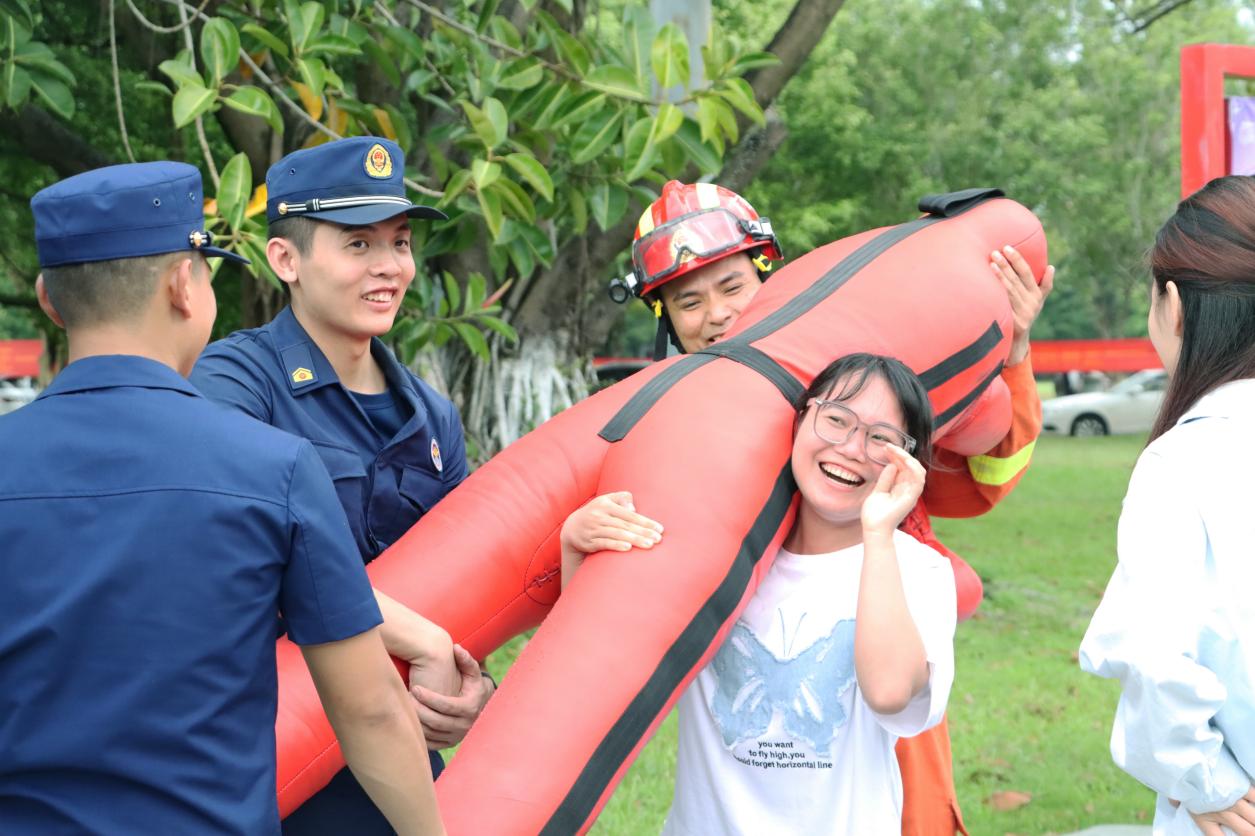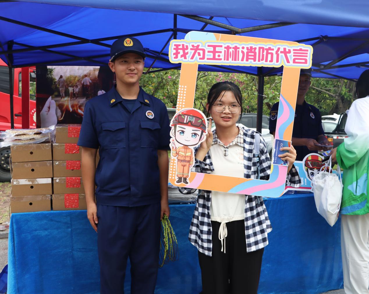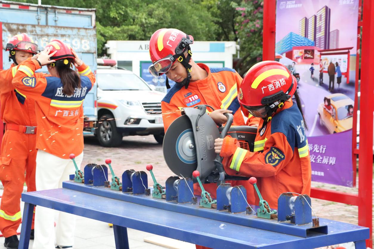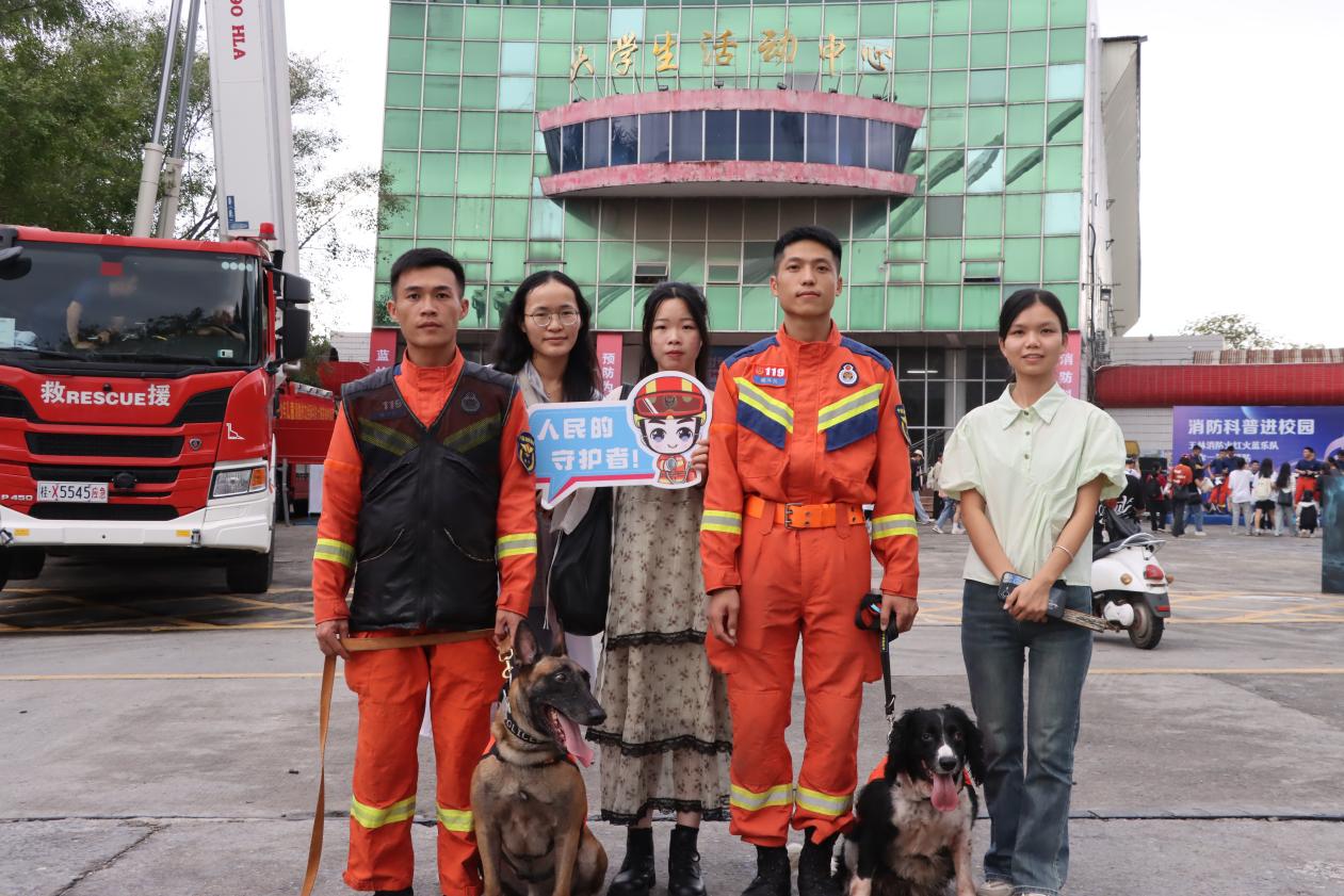 在大学生活动中心前,玉林市消防和我校带来消防救援队伍改革转隶五周年成果展、玉林师范学院志愿消防队建设成果演示、玉林消防文艺科普小分队进校园、消防科普展暨玉林消防新媒体粉丝嘉年华等丰富多彩的活动。消防志愿者为师生群众作详细理论讲解,大家近距离体验消防员的工作和消防器材设施,开展《消防短语速记》挑战、消防知识问答摇摇篮等多个趣味游戏,进一步了解消防、关注消防、支持消防。