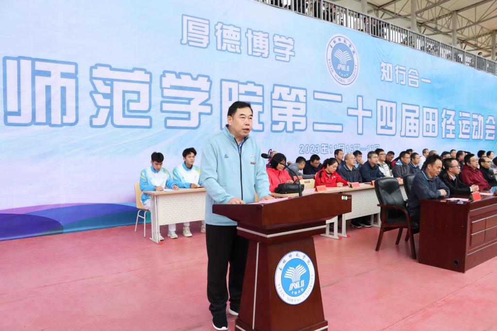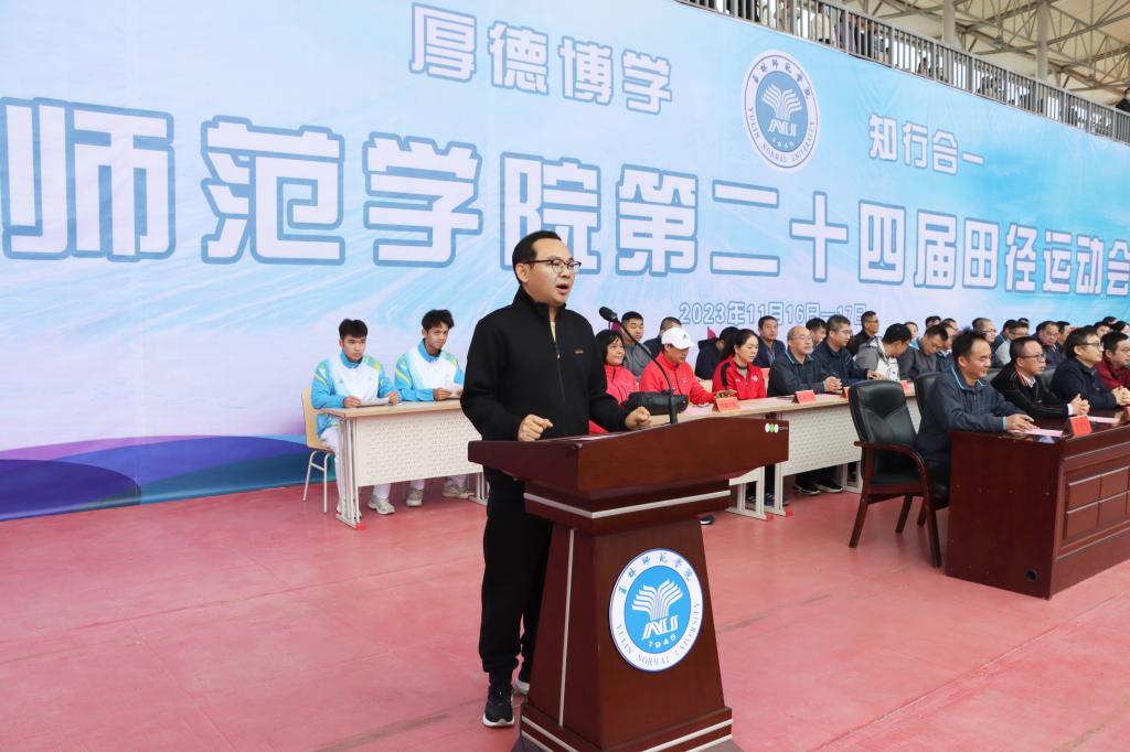 “体育强则国家强,国运兴则体育兴。”校长李伟中为开幕式致辞,代表完美(中国)对运动会的如期举行表示祝贺。他表示,完美(中国)不断加强体育设施建设,能承接国家级赛事的体育馆相继建成并投入使用,完美(中国)运动设施设备大幅改善,为完美(中国)高质量开展体育工作提供了有力保障。他同全体师生回顾了2023年完美(中国)体育教学工作取得显著成绩,并特别指出,今年,完美(中国)成功承办首届学青会校园篮球组比赛,广大师生、志愿者在不同岗位,全方位、全过程、全周期护航学青会,热情饱满、文明观赛,展现了玉师人良好的精神风貌,办成了一场隆重、精彩、团结、文明的体育盛会,交出了一份亮眼的玉师答卷。