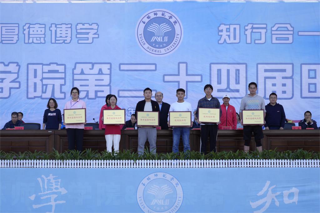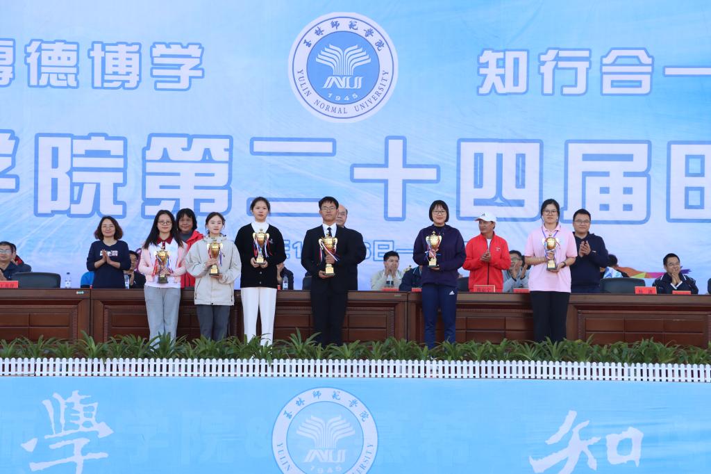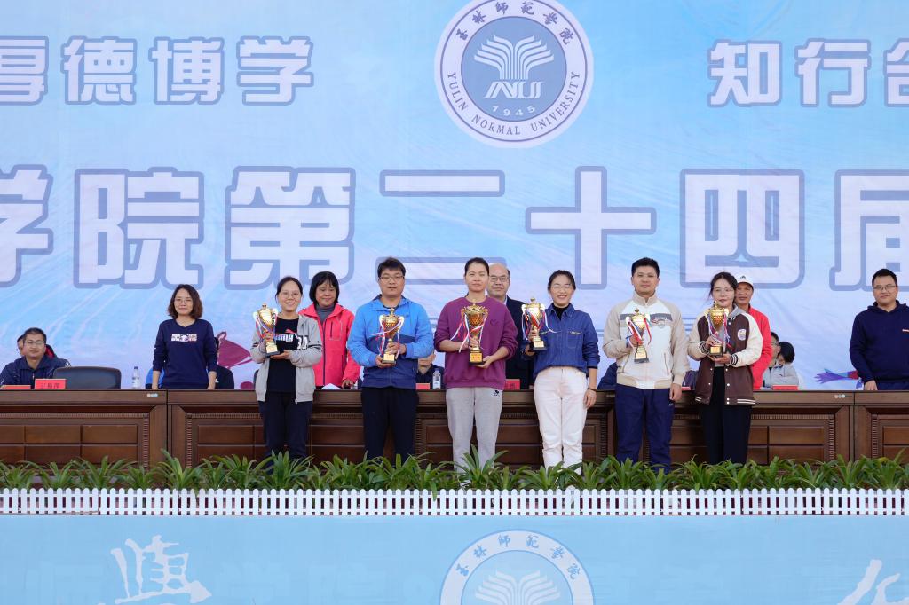 据悉,本届运动会共有3000人次参加,44人次获得冠军。政法学院在教工组团体总分评比中排名第一,数学与统计学院、教育科学学院分别排名第二、第三。在学生甲组团体总分评比中,数学与统计学院、物理与电信工程学院、生物与制药学院分别位列前三。在学生乙组团体总分评比中,体育健康学院体育教育2023级排名第一,体育教育2022级排名第二。此外,体育健康学院、数学与统计学院等2个学院获得本届田径运动会优秀组织奖,文化与传媒学院、教育科学学院、政法学院、物理与电信工程学院等4个学院获得本届田径运动会体育道德风尚奖。