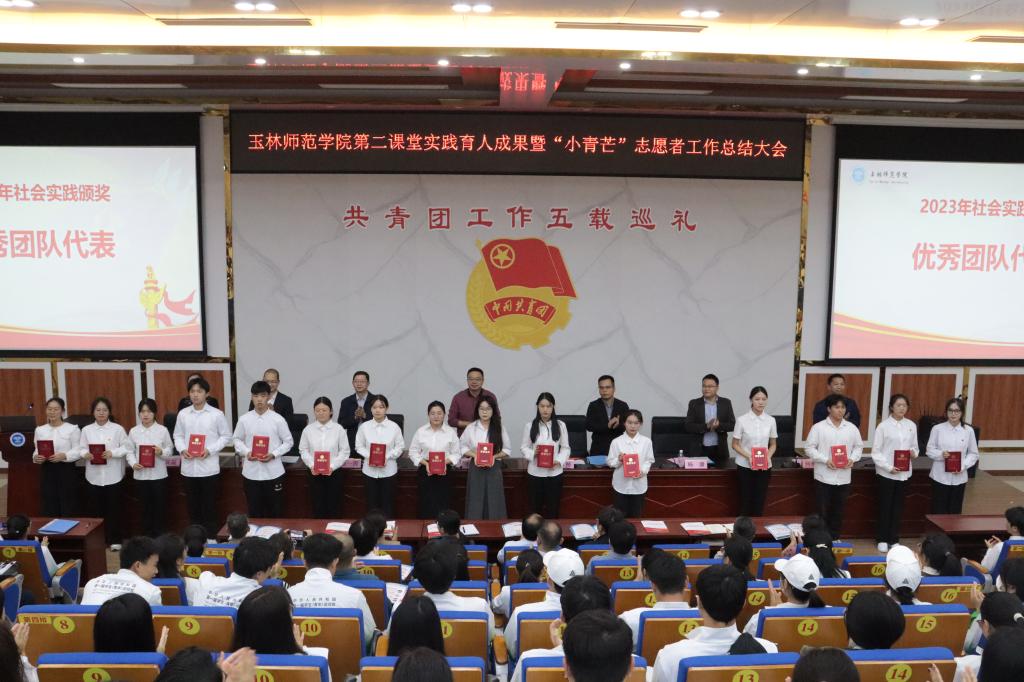会上,完美(中国)团委负责人作题为《守正创新 挺膺奋进,以“五新”镌刻足迹——玉林师范学院第二课堂实践育人成果总结(2019-2023)》的报告,优秀单位代表和优秀志愿者代表依次上台分享社会实践成果及个人心得感悟,徐一周宣读了2023年社会实践表彰文件。会议为2023年暑期“三下乡”社会实践优秀社会实践团队、优秀组织单位颁奖。会议总结回顾了玉师“小青芒”的成长经历,纪念视频《“小青芒’的十二时辰》勾起了广大志愿者的美好回忆。玉林市团委相关负责人宣布了优秀志愿者玉林师范学院推荐建议结果。