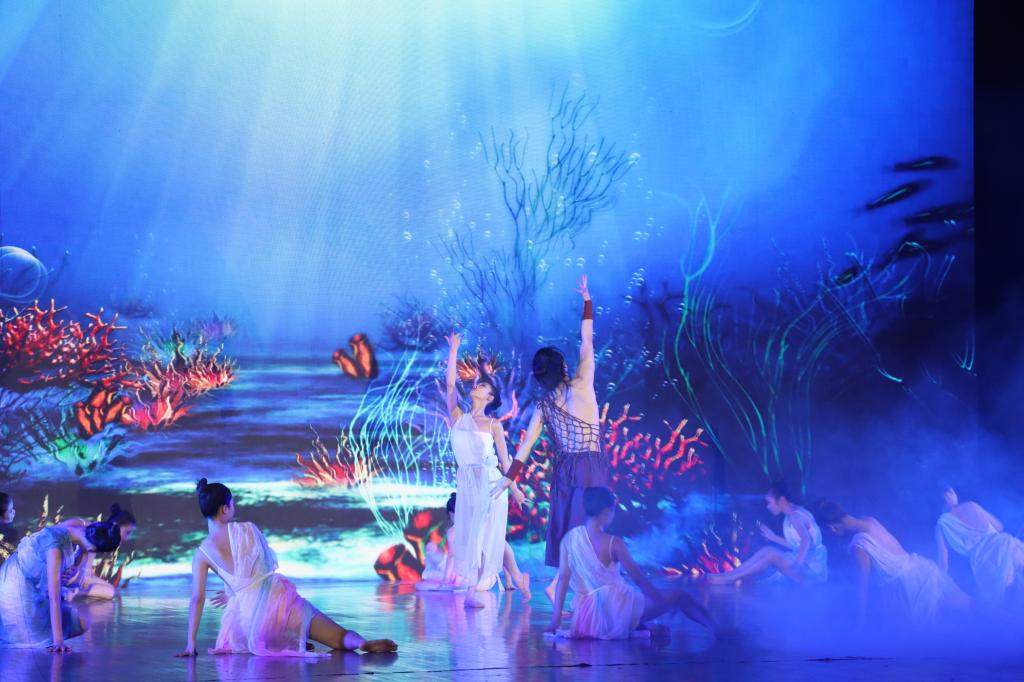 11月28日晚,广西当代文学艺术创作工程三年规划(2022—2024年)扶持剧目《京岛情海》在我校东校区演示厅巡演。我校师生代表近千人到场观看。