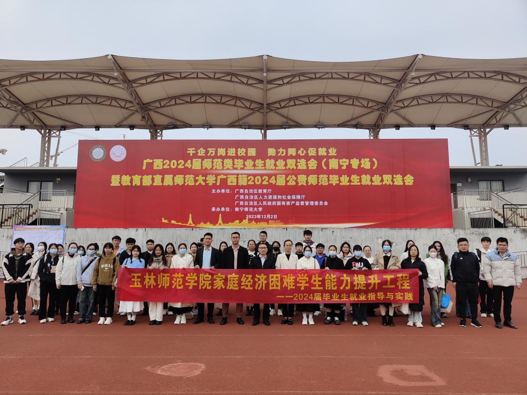 12月2日,广西2024届师范类毕业生就业双选会(南宁专场)暨教育部直属师范大学广西籍2024届公费师范毕业生就业双选会在南宁师范大学五合校区举行。本次双选会由自治区教育厅、自治区人力资源和社会保障厅、自治区国资委主办,南宁师范大学承办。我校副校长刘永建带队率领300多名毕业生赴邕参加招聘会。