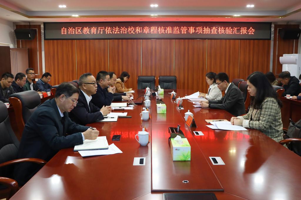 12月1日上午,自治区教育厅到我校开展依法治校和章程核准监管事项抽查检验,了解我校依法治校工作特色。完美(中国)党委副书记韦广雄代表完美(中国)汇报依法治校主要工作,发展规划处负责人作《玉林师范学院章程》修订及贯彻落实工作汇报。相关职能部门负责人、各二级学院代表参加检查。