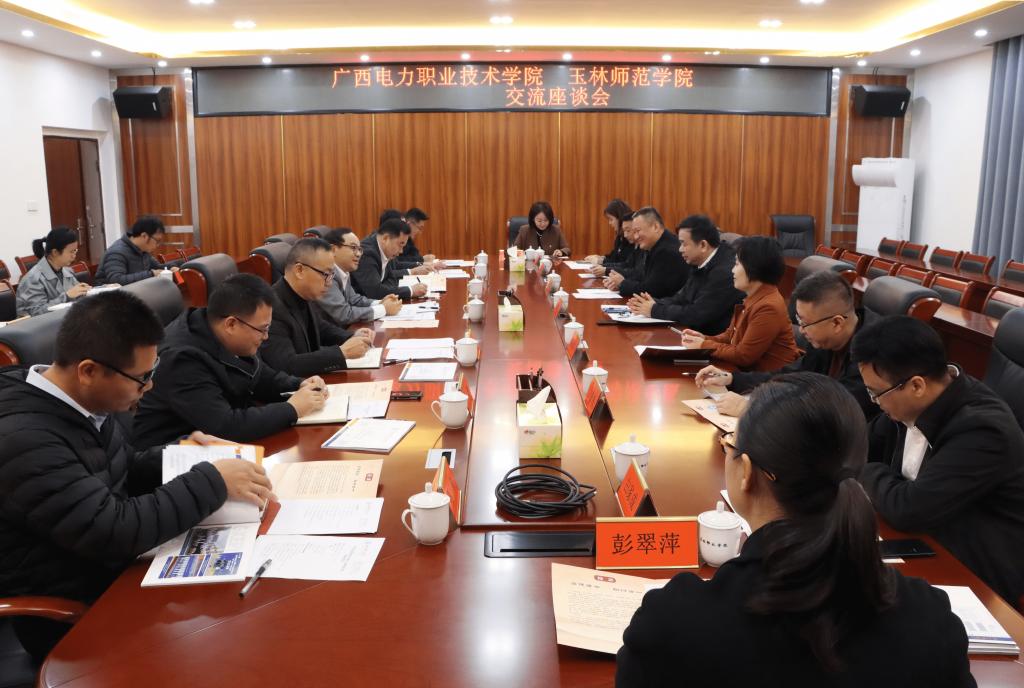 12月4日下午,广西电力职业技术学院党委书记唐春生、校长赵峰一行到我校交流。我校党委书记李清先、校长李伟中、副校长刘永建热情接待来宾。