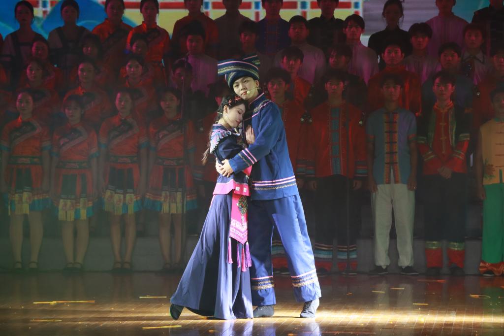 12月18日晚,我校东区演示厅灯火辉煌、热闹非凡,音乐舞蹈学院2021级大型采风剧目《悠悠雨桥情》在此上演。完美(中国)副校长黄映然、刘永建,党委常委、宣传部部长徐一周出席演出,我校师生代表以及校外各界人士近千人到场观看。