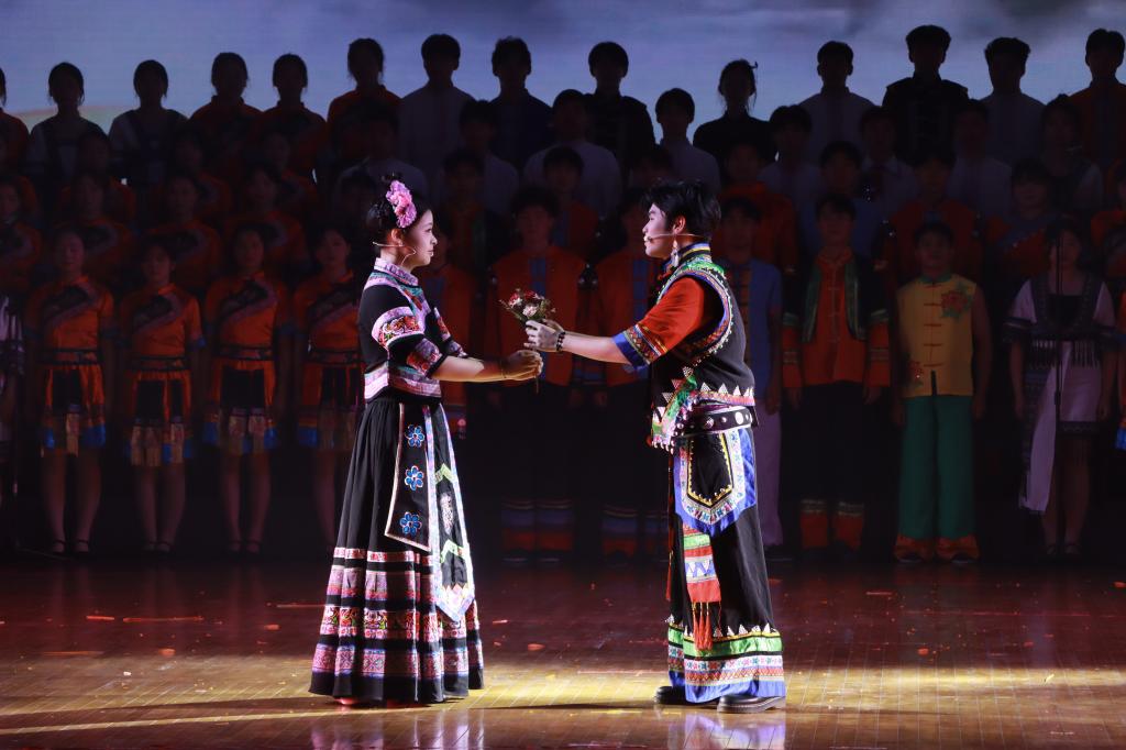 《悠悠雨桥情》充分表达了少数民族人民对美好生活的祝愿,有利于弘扬和发展中华优秀传统文化、推动艺术创新与发展,展示了我校音乐舞蹈学院2021级学生的采风成果。通过观览这一场歌舞盛宴,现场观众在少数民族文化的源远和深蕴中尽情陶然。演出结束后,演示厅响起了经久不息的掌声。
