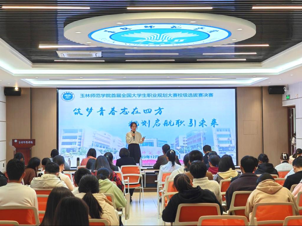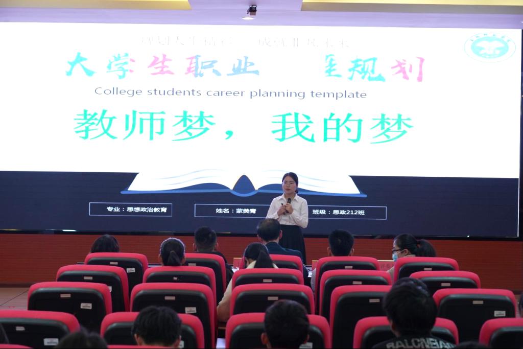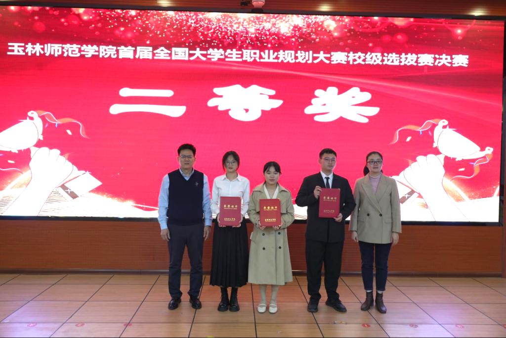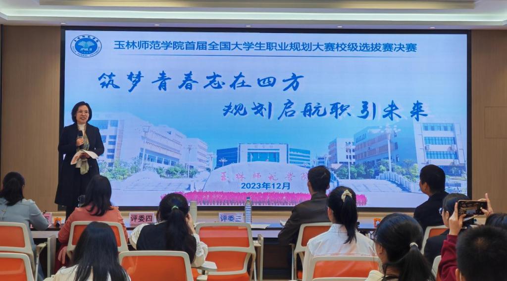 决赛现场,选手们围绕职业目标定位、差距分析、行动实施计划、评估与调整、人岗适配度等方面以PPT形式进行了展示,充分展现出玉师学子优秀的职业规划能力与职业素养,带来了一场青春盛宴。评委就选手陈述及现场表现进行提问,考察选手职业动机以及对岗位的了解程度,并结合职业前景、实现路径提出切实可行的建议。