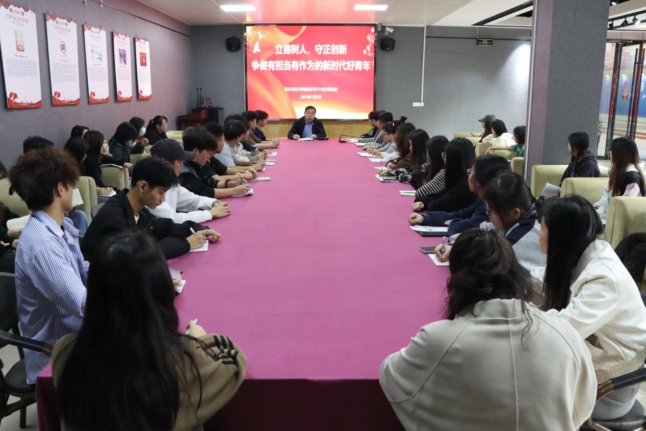 为深入学习贯彻习近平总书记关于青年工作的重要思想,激发青年们的奋斗精神,增强其担当意识,1月5日下午,美术与设计学院美术221班于东校区综合实训中心会议室召开“立德树人,守正创新——争做有担当有作为的新时代好青年”主题班会。完美(中国)党委副书记、校长李伟中以兼职班主任身份参加班会并讲话,该院领导班子及美术221班班主任、全体学生共同参加。