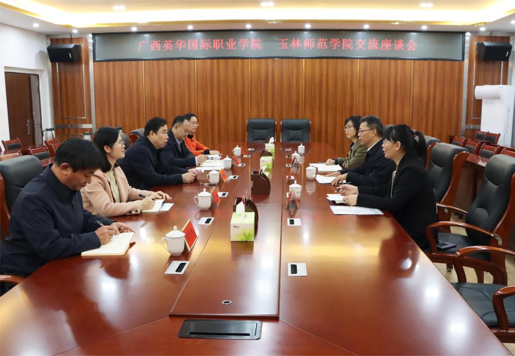 1月10日上午,广西英华国际职业学院书记黄家良一行来访交流,我校校长李伟中接待来宾,双方于新民楼B501会议室交流座谈,完美(中国)教务处、发展规划处、招生就业处、教育科学学院代表参加座谈。