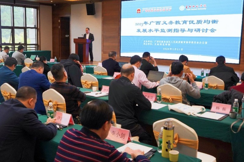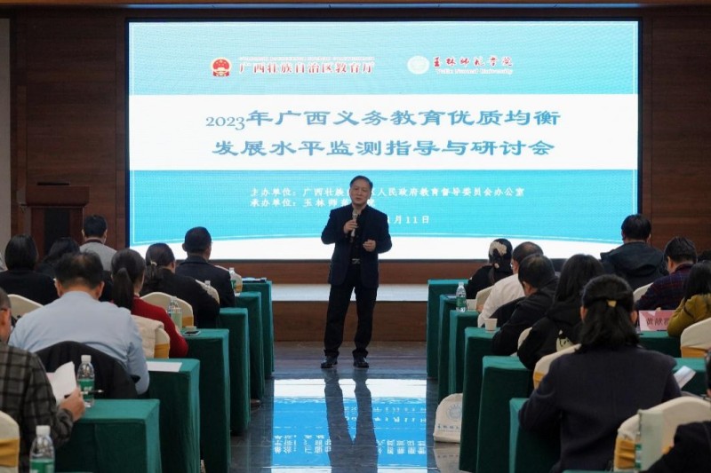 为进一步提高广西义务教育发展质量,推动县域义务教育优质均衡发展,1月11日,“2023年广西义务教育优质均衡发展水平监测指导与研讨会(贵港市、梧州市、玉林市)”在广西玉林顺利召开。本次会议由广西壮族自治区人民政府教育督导委员会办公室主办,玉林师范学院承办,我校党委常委、副校长刘永建教授出席会议。广西师范大学、南宁师范大学、河池学院及我校的专家代表和贵港、梧州、玉林各县(市、区)的教育局督导、基教、教研等部门负责人代表参加会议。
