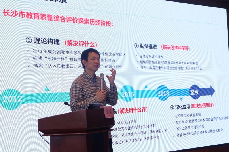 在特邀主题讲座环节,广西师范大学教育评估院常务副院长李广海教授、长沙市教科院副院长章勇作专题报告。