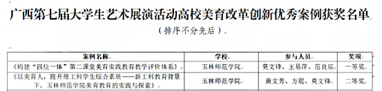 其中,广西壮族自治区教育厅从全区154篇高校美育改革创新案例中遴选15篇进行现场报告交流,案例《构建“四位一体”第二课堂美育实践教育教学评价体系》在广西第七届大学生艺术展演活动高校美育改革创新案例报告会上做了交流,向全区高校介绍我校在美育教育教学评价中取得的成功经验,进一步提高我校的影响力和知名度。