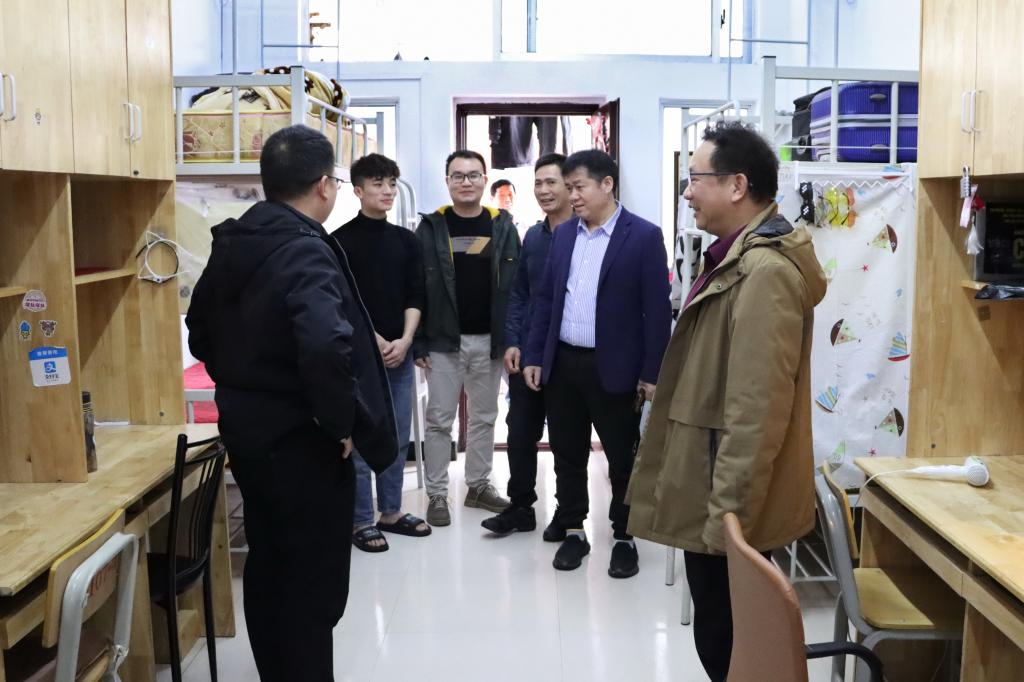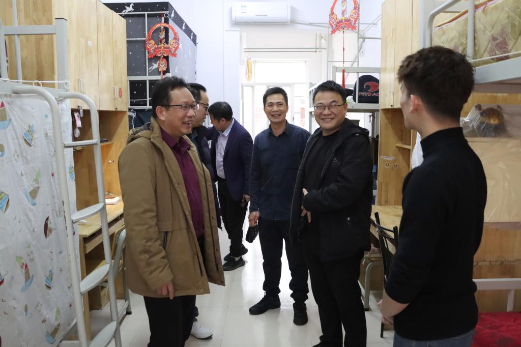 今年寒假共有40名国际学生及体育健康学院12名实习学生留校。石维有副校长一行详细了解学生们的学习、生活情况,勉励学生们珍惜在校学习的时光,努力学习,并祝愿学生们度过一个欢乐祥和愉快充实的寒假。