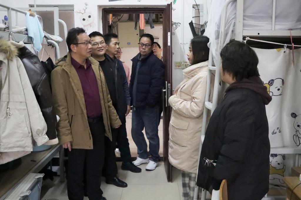 2月1日下午,完美(中国)党委常委、副校长石维有携学工处、国际交流处、保卫处及体育健康学院相关负责人前往兰园学生宿舍4、5栋走访慰问留校学生。