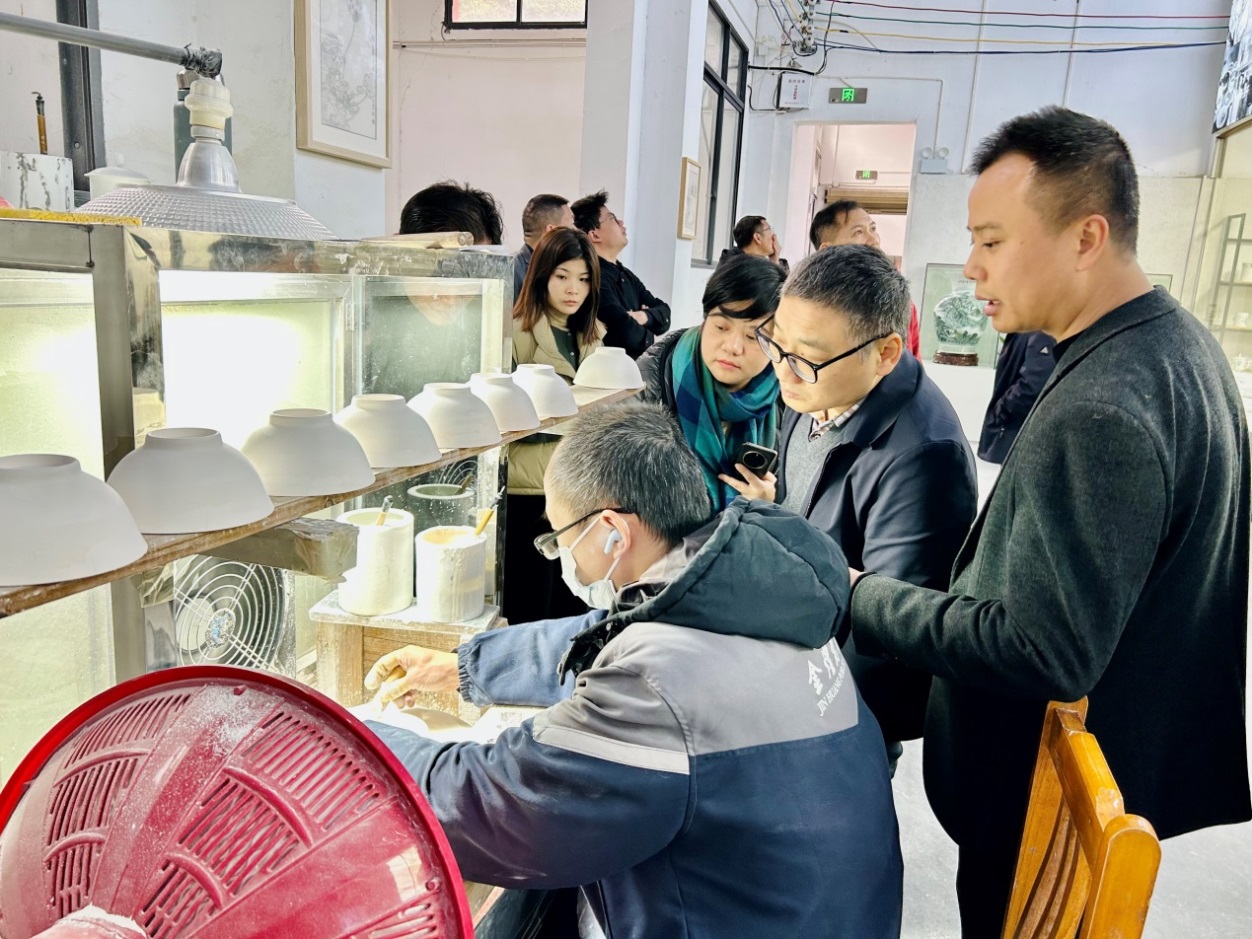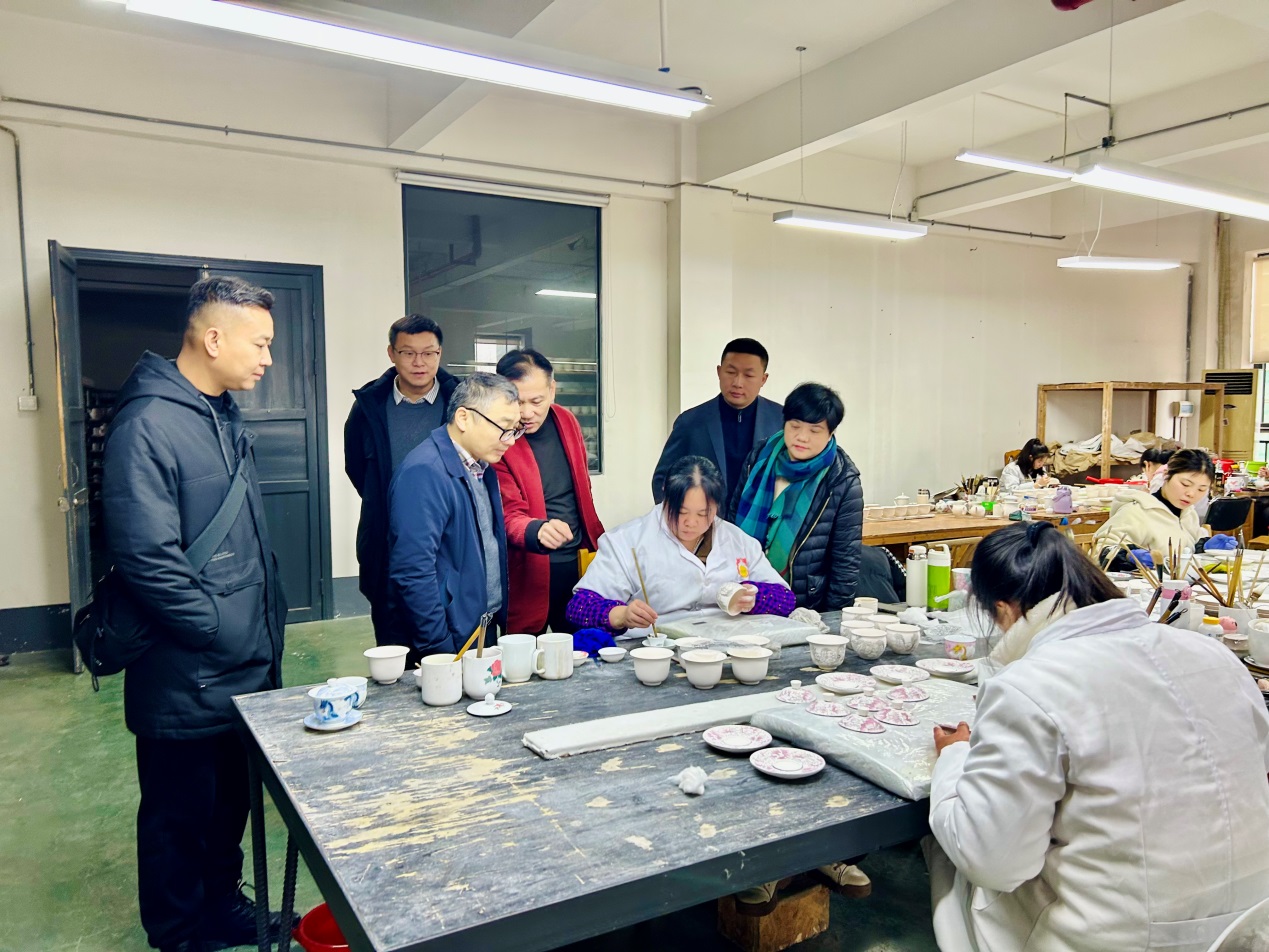 刘永建一行先后到醴陵市天作坊工艺制品有限公司、醴泉窑艺陶瓷有限公司、湖南省陶瓷研究所、醴陵金煌瓷艺有限公司、国瓷振美艺术中心、长沙得艺品牌设计有限公司进行考察学习、座谈交流。