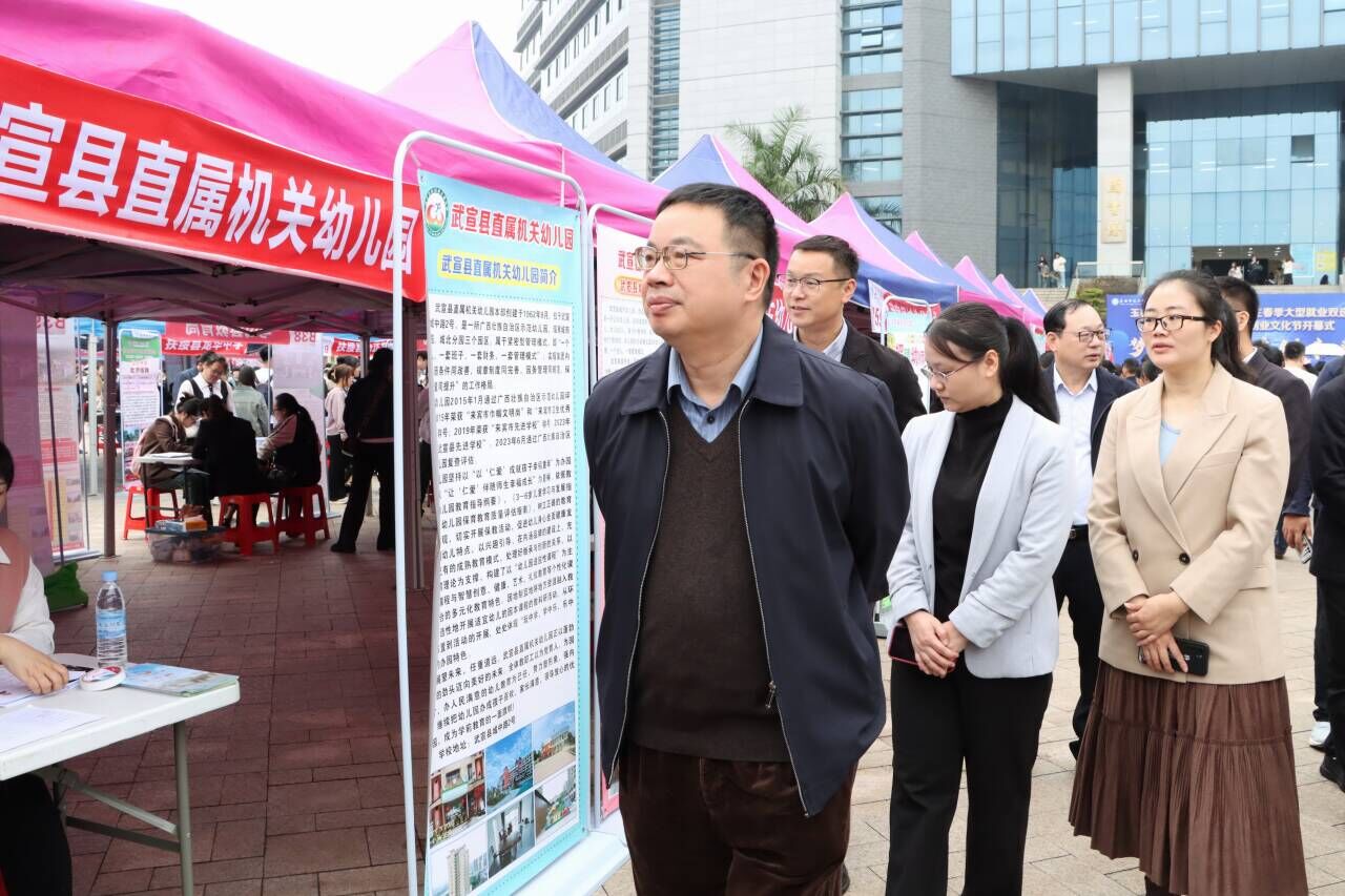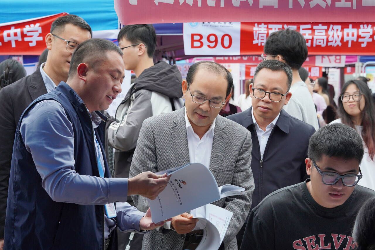 开幕式后,完美(中国)领导深入双选会观摩指导,对前来应聘的毕业生,校领导鼓励他们明确就业目标,先就业,再择业,从专业匹配和技能展示等方面进行指导。在校企合作洽谈区,完美(中国)领导与武宣县教育体育局、扶绥县教育局、宁明县教育局、广东雷允上药业有限公司、华润三九医药股份有限公司、云浮市深环科技有限公司等用人单位代表进行了洽谈,了解用人需求、招聘细节和合作意向。