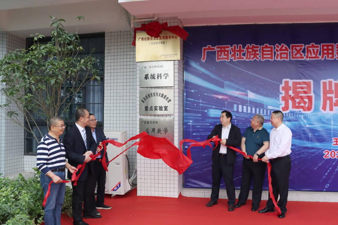 王淮、李伟中、李湘凡、黄云清、杨新民、刘振海为广西壮族自治区应用数学中心(玉林师范学院)揭牌。随后,领导嘉宾一行参观了广西壮族自治区应用数学中心(玉林师范学院)。