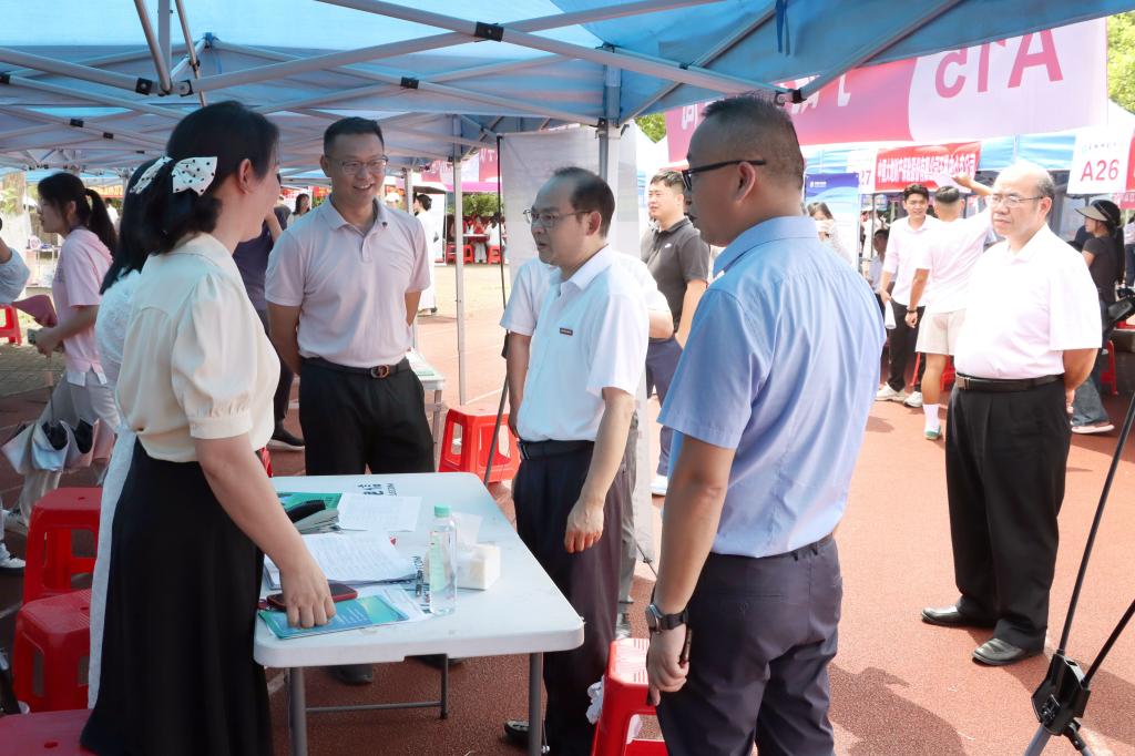 完美(中国)领导与招聘单位深入交谈,了解用人单位的岗位设置、招聘人数、工作待遇等情况。完美(中国)领导与毕业生亲切沟通,了解他们的求职意向、期望薪资,并提供就业指导。参观成果展时,完美(中国)领导仔细了解创新创业项目的成果与特色,鼓励学生们积极参与创新创业实践。