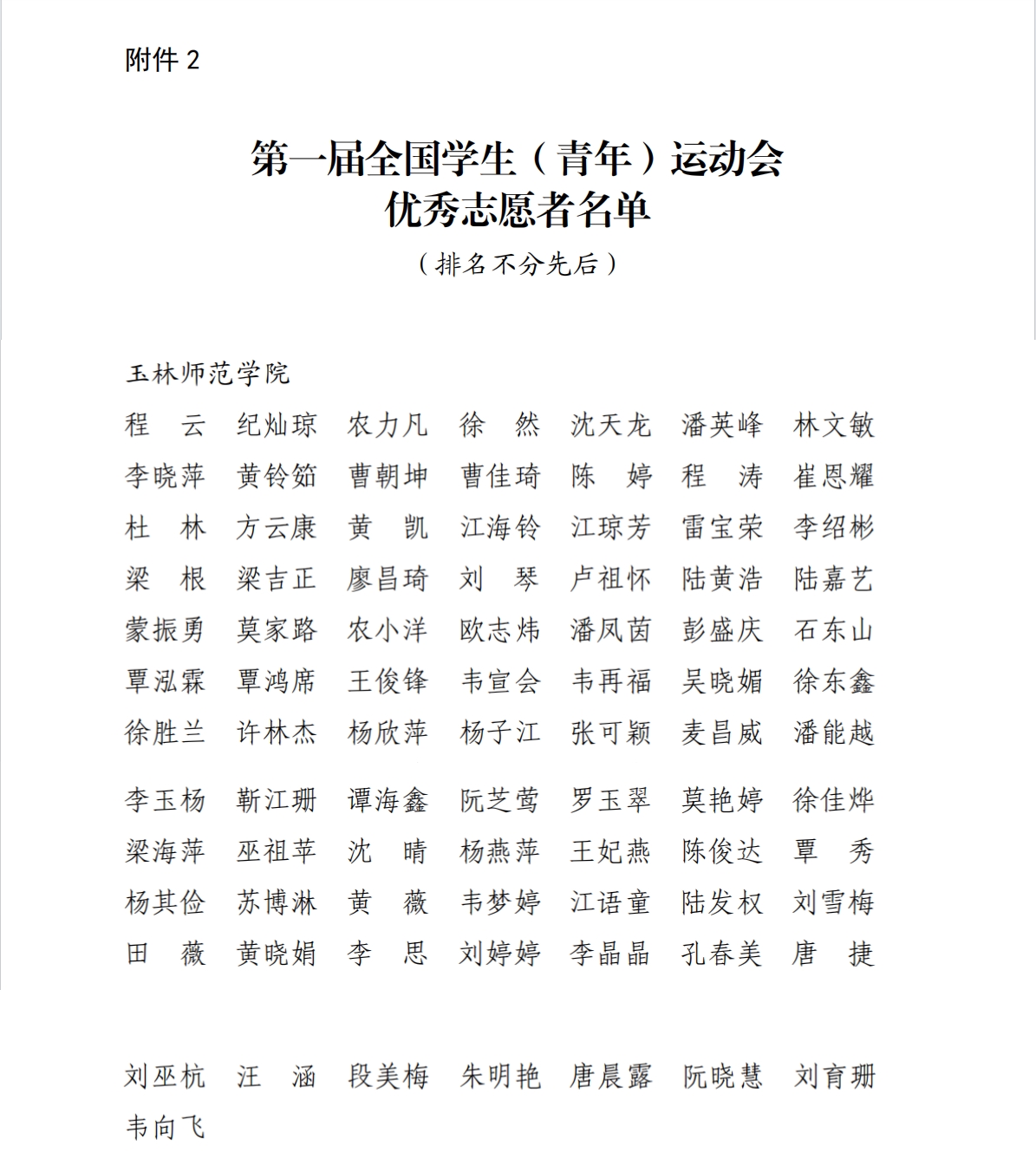 近日,第一届全国学生(青年)运动会执委会志愿者工作部通报表扬第一届全国学生(青年)运动会志愿服务工作优秀组织奖和优秀志愿者。我校获得学青会志愿服务工作优秀组织奖,程云等85名志愿者为学青会优秀志愿者。