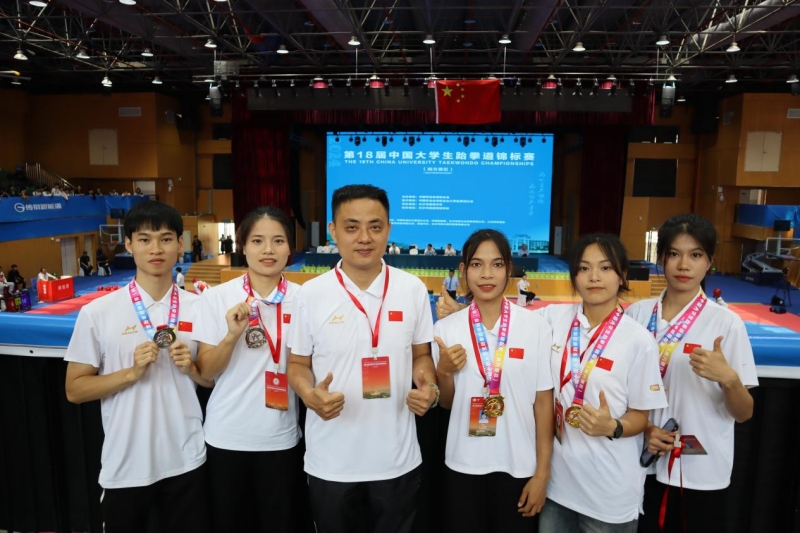第18届中国大学生跆拳道锦标赛(南方赛区)于2024年5月21日-25日在湖南省长沙市明德中学举行,大赛有北京大学、上海体育大学、北京体育大学等来自全国242所高校的2251名运动员参加。我校跆拳道队在体育专业组女子团体品势项目中夺得1金、女子个人品势、混双品势中夺得2银、女子个人品势、竞技项目2项第四名、2项第五名、1项第八名的优异成绩。这是我校首次参加中国学生体育联合会举办的全国性赛事并获得金牌。