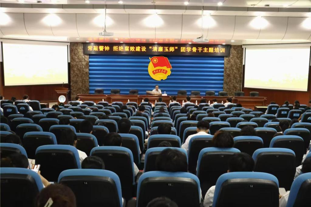 为深入学习贯彻习近平总书记关于青年工作的重要论述,以理想信念教育为首要任务,进一步强化新时代团学组织基层建设,10月22日,我校在东区学术报告厅召开“常敲警钟 拒腐防变,建设‘清廉玉师’”团学骨干主题培训会。本次培训会由我校纪委书记李月发主讲,“十百千”团学骨干轮训班学员参加培训。