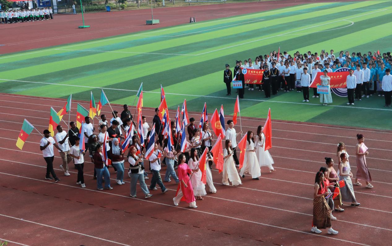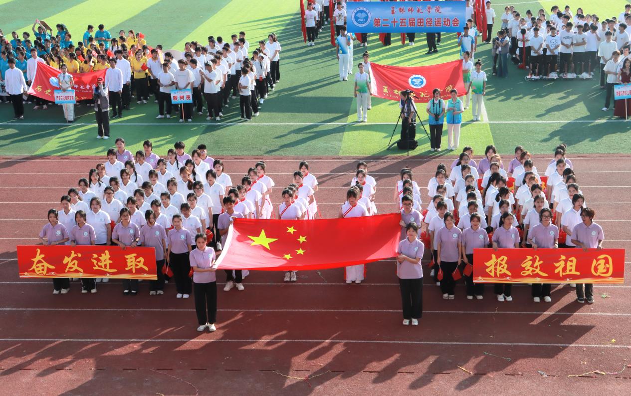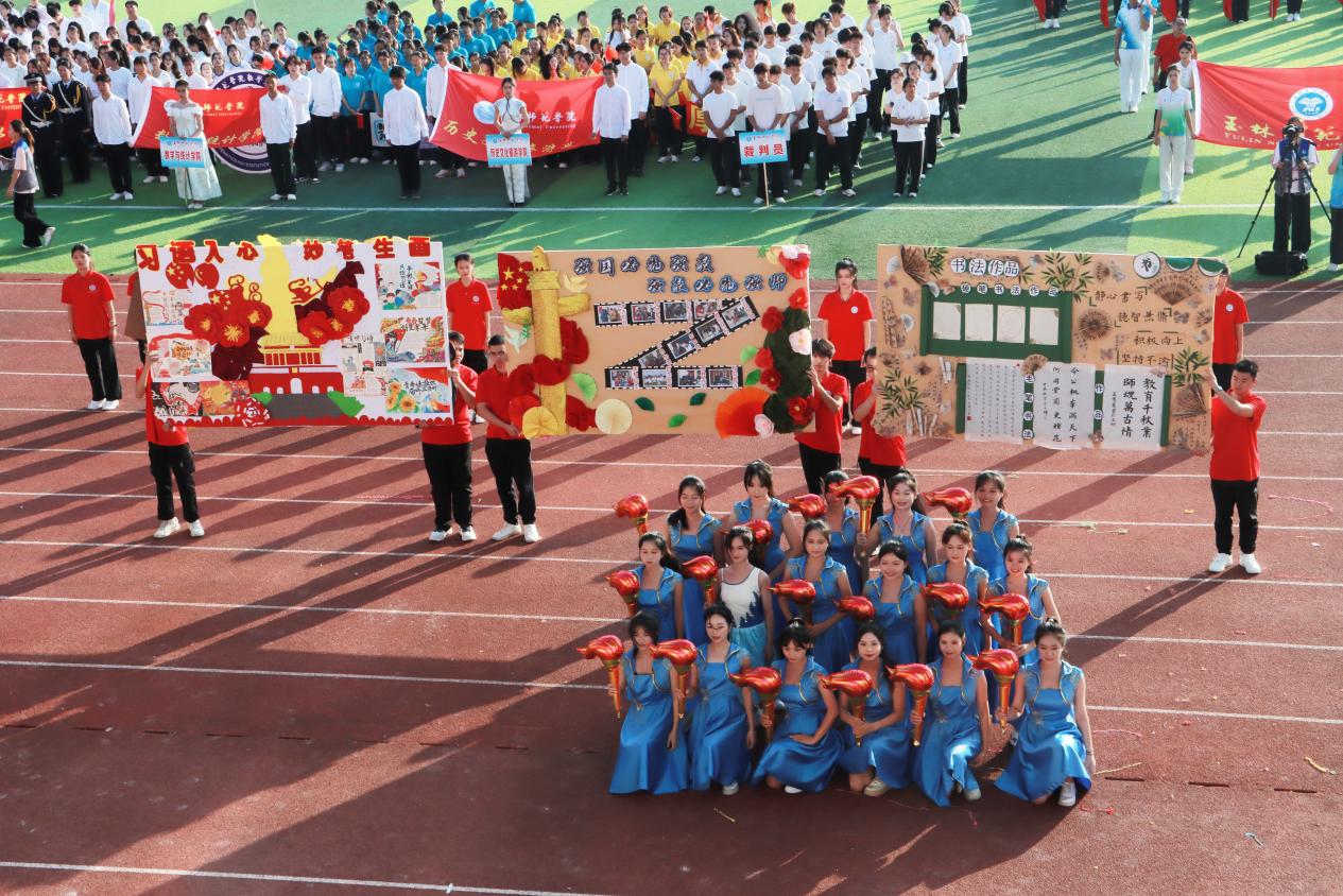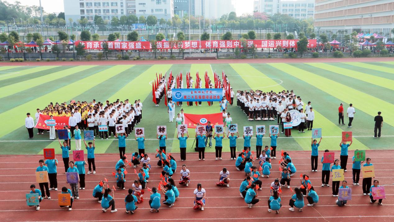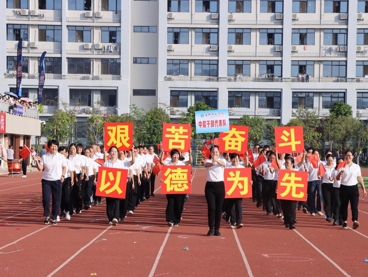 清晨阳光撒上跑道,各二级学院代表团组成的方块队迈着坚定的步伐有序进场,响亮的口号响彻运动场。“力争上游,超越自我”是他们共同的目标,“发扬体育精神,展现青春风采”是他们勇往直前的精神口号。各二级学院精彩的表演充分展现专业特色与运动之美,使场上的观众喝彩不断。舞狮出场更是马上“圈粉”无数,成为本届运动会开幕式的亮点。在庄严的国歌声中,五星红旗缓缓升起,迎风飘扬。