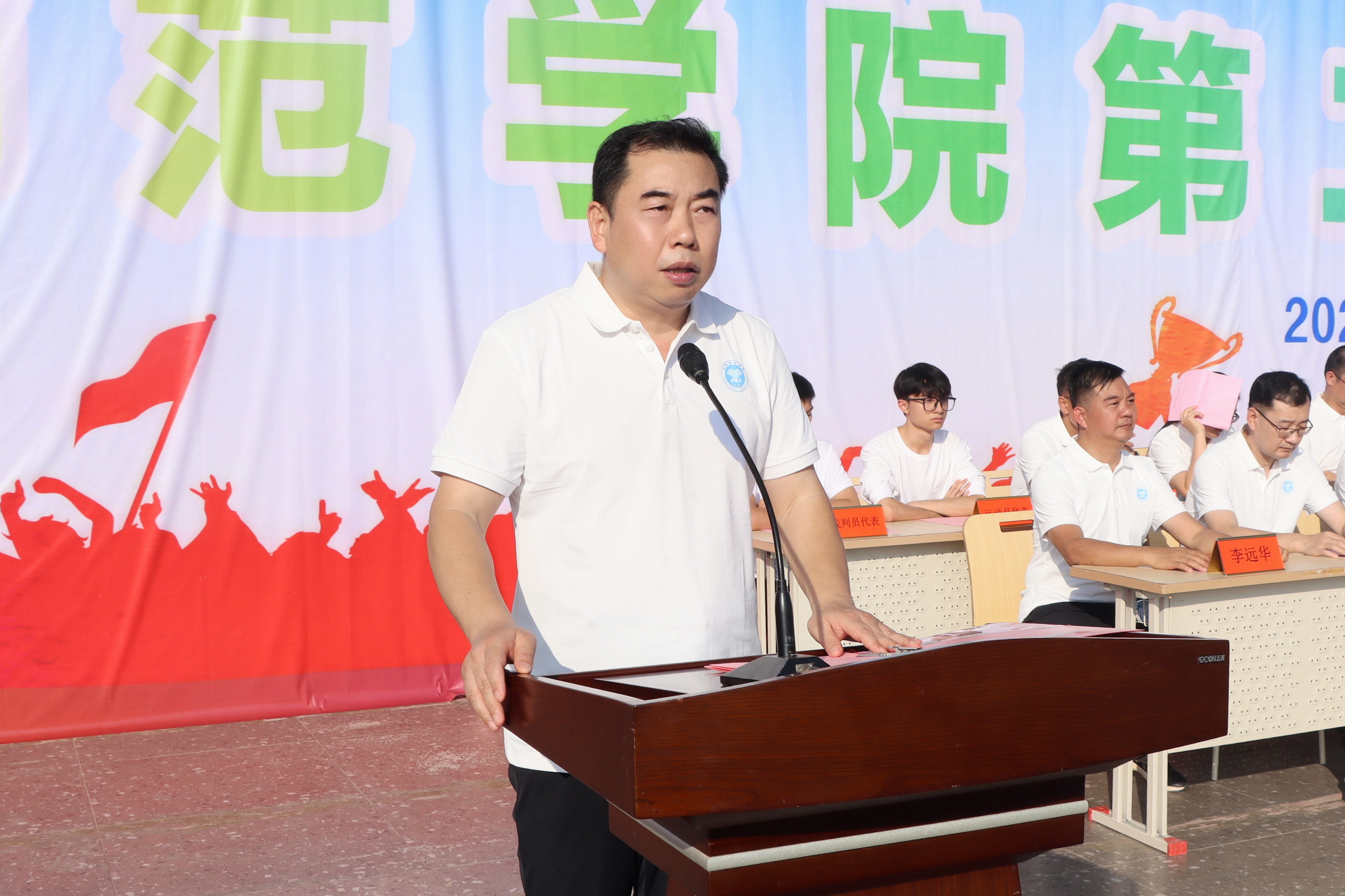 运动员代表、裁判员代表宣誓后,党委书记李清先宣布第二十五届田径运动会正式开幕。在观众的期待中,比赛项目逐项进行。