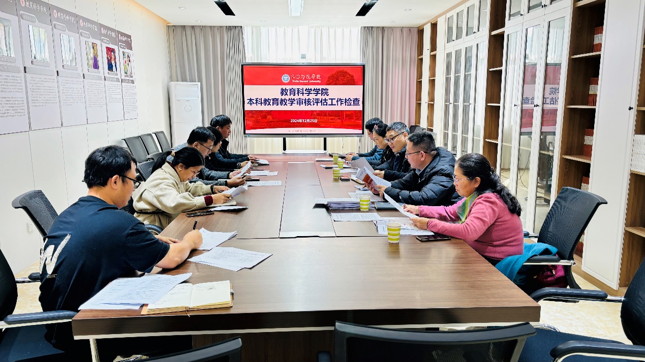 12月25日上午,副校长刘永建一行到教育科学学院检查指导本科教育教学审核评估工作,本科教育教学审核评估工作检查组成员、该院领导班子成员参加会议。