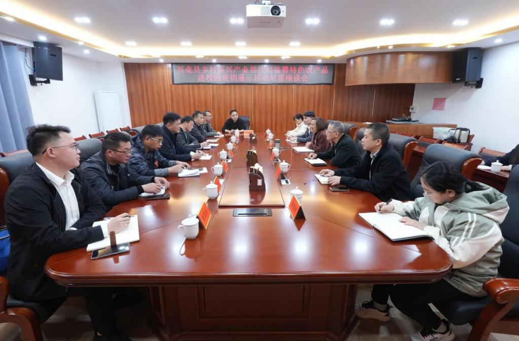 赵坚详细介绍了本次兴业县乡村振兴产业帮扶对接暨特色农产品进校园展销展示活动对接座谈会的目的,希望我校在场地布置、宣传等方面给予支持。庞国萍对赵坚一行表示欢迎,介绍了我校基本情况,特别是我校结合地方经济社会发展需求在乡村振兴方面开展的工作和取得的成绩。庞国萍表示将对本次活动给予大力支持,并要求相关部门全力配合。