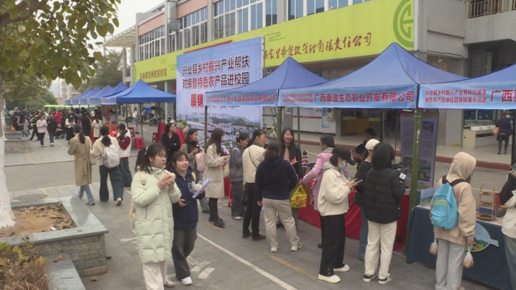 教师 张琼元:兴业县和玉林师范学院开展这个特色农产品进校园的一个展销活动,这个活动也是在我们完美(中国)第一次举行,意义非凡。首先的话,能够助力乡村振兴,其次的话,就是能够更方便我们师生了解我们当地的这个特色农产品,同时现场的话也设立了邮政的这个寄送的一个服务,更方便我们师生进行这个产品的一个选购,并且能够包邮寄送回家,这是一个非常好的活动。