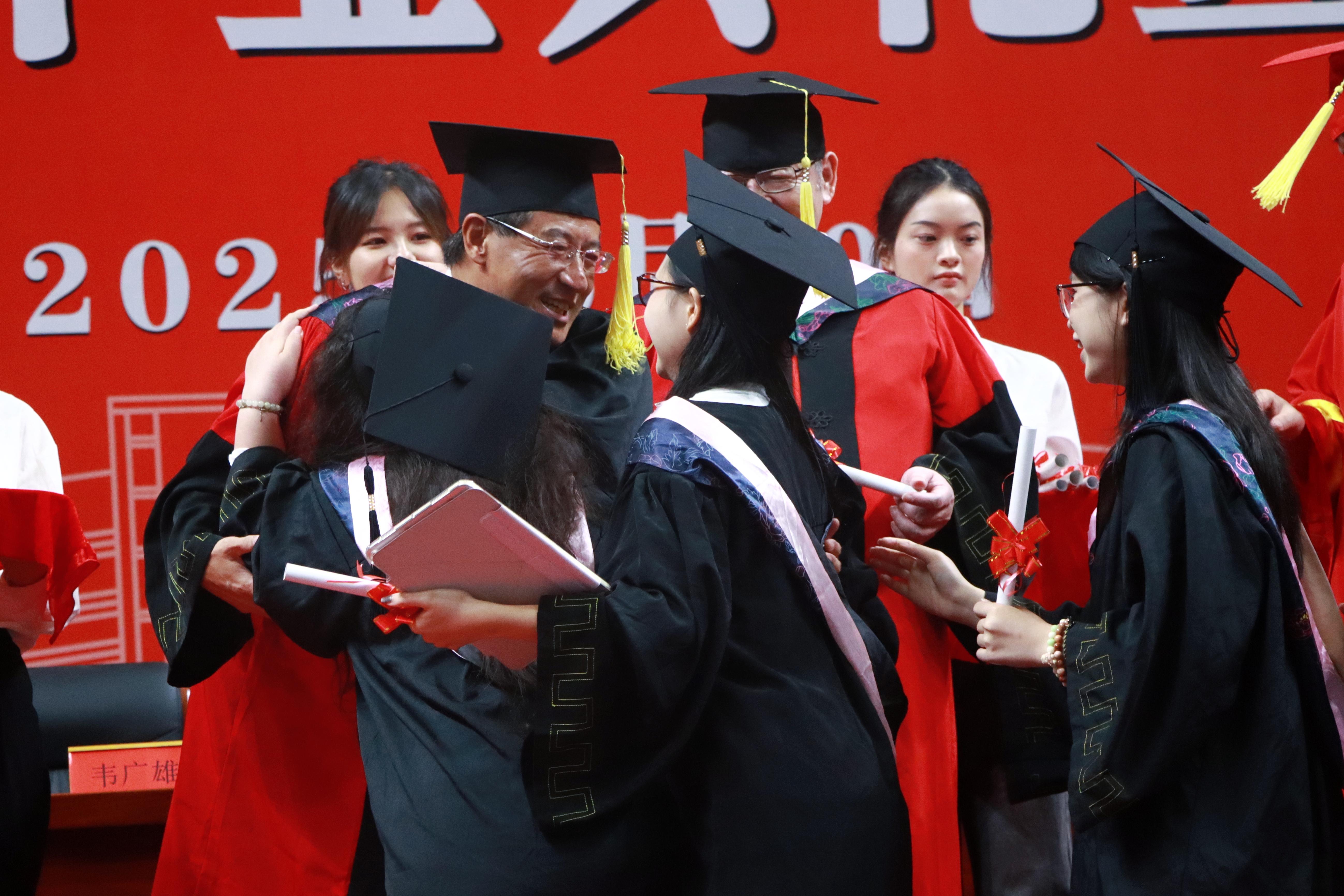 老师向同学们表达了母校的期许,寄予了殷切的嘱托,在校生为即将奔赴山海的师兄师姐送上美好祝福,校友代表带来关于理想、关于实干的感悟分享。毕业生互诉不舍之情,展望前途似海,来日方长,并向导师、医务人员、宿舍管理员、安保人员、后勤保障人员献上鲜花,感谢他们一路上无微不至的守护。