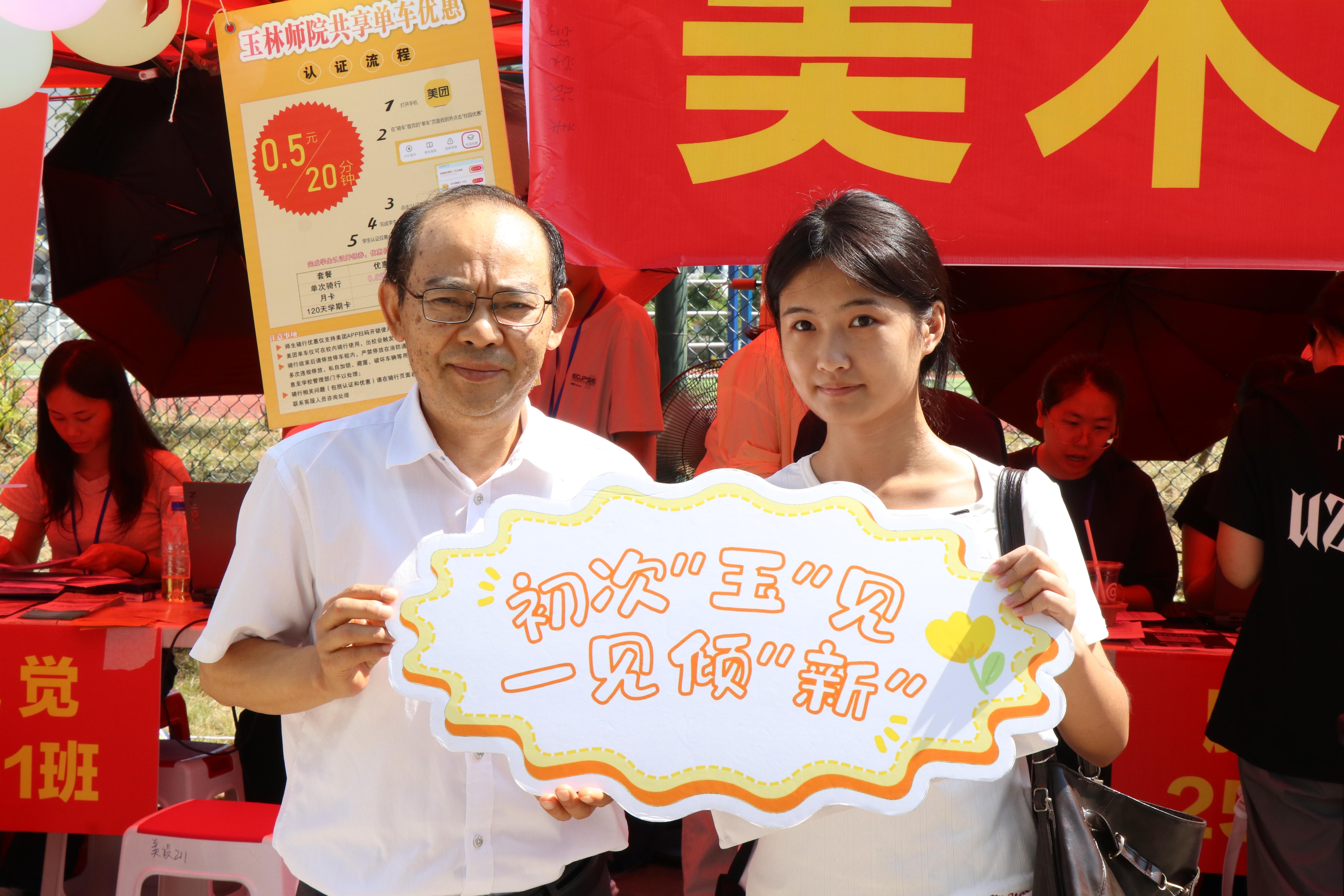 (李清先、李伟中检查迎新工作,与新生合影)
