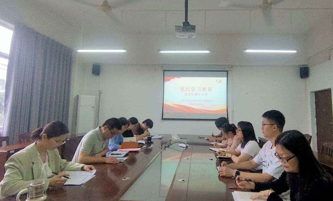 4月22日上午,外国语学院党委于我校东区厚德1-306会议室举办党纪学习教育专题学习班进行第一期学习。党委书记靳闯担任主讲,该院领导班子、党委委员、党支部书记、专职组织员、党务骨干参与本次会议。