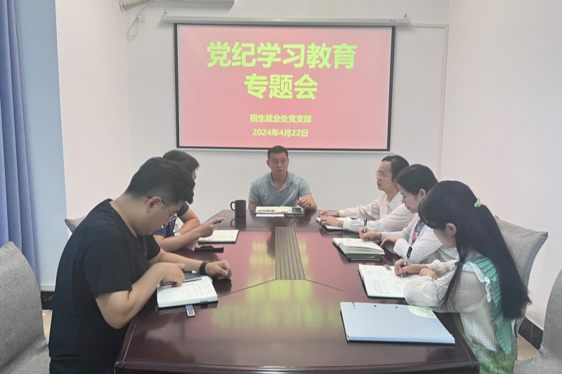 为深入学习贯彻习近平总书记关于党纪学习教育的重要讲话和重要指示精神,进一步推动党纪学习教育走深走实。4月22日,招生就业处于我校东校区新民楼B110会议室召开党纪学习教育专题会,招生就业处全体人员参会,会议由处长庞文驹主持。